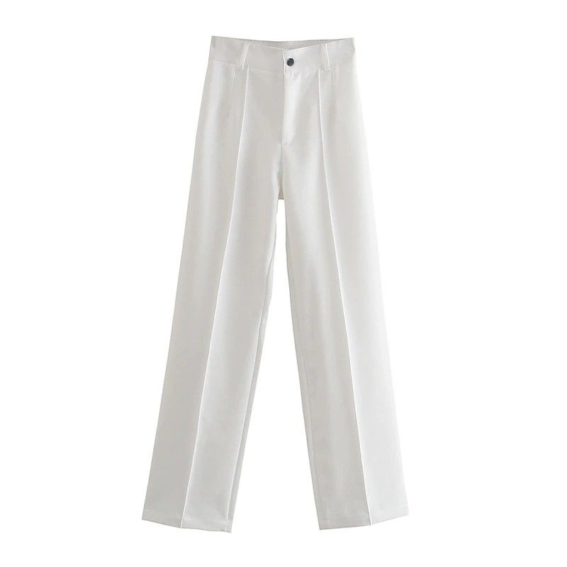Traf Vrouwen Chic Fashion Kantoor Slijtage Rechte Broek Vintage Hoge Taille Rits Vrouwelijke Broek Vrouw
