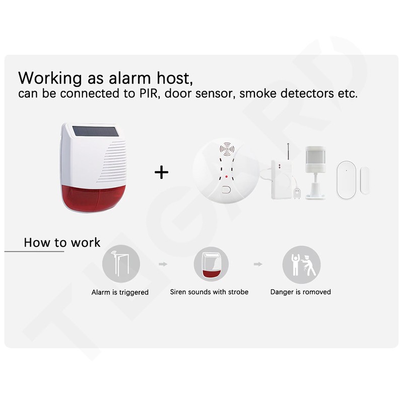 Tugard 433Mhz Wireless Outdoor Solar Sirene Licht Flash Strobe Waterdichte Alarmsirene Voor Home Security Inbreker Wifi Alarmsysteem