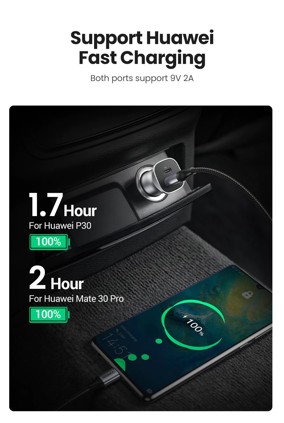 Ugreen Autolader Type C Snelle Usb Charger Voor Iphone 13 12 Xiaomi Auto Opladen Quick 4.0 3.0 Lading Moible Telefoon Pd Charger