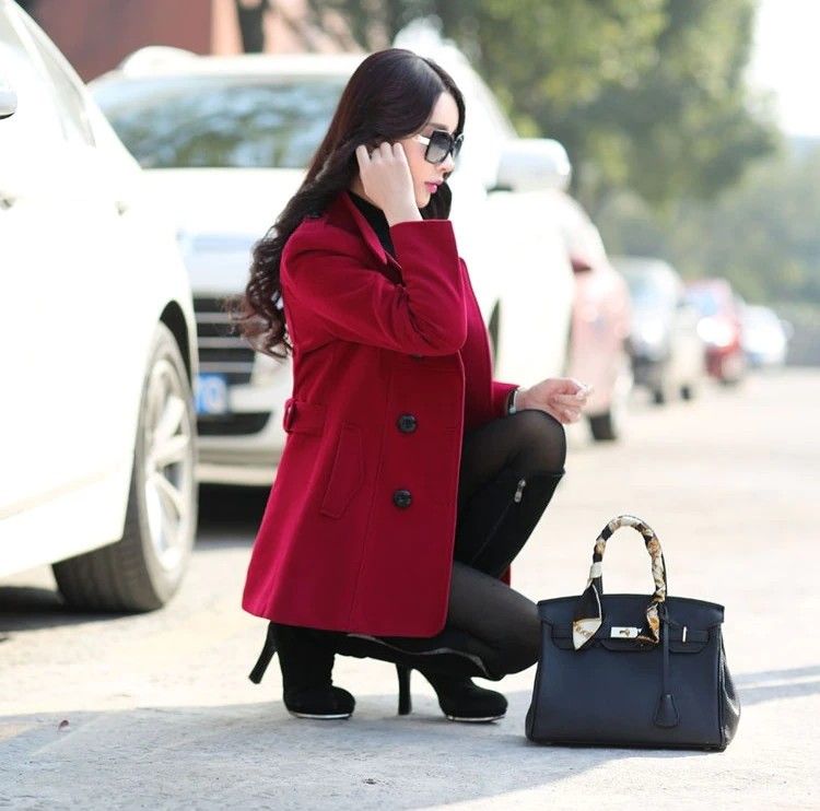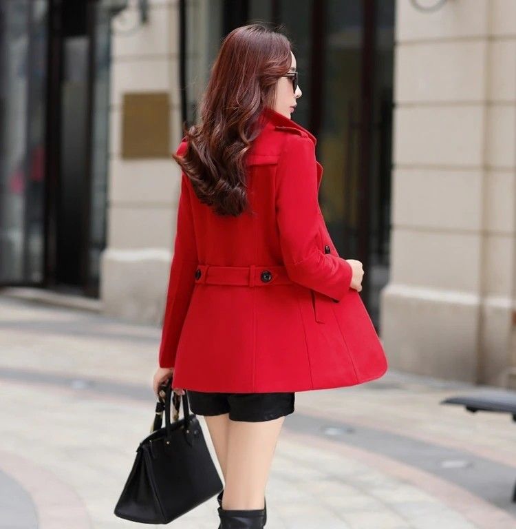 Uhytgf Mode Winter Jas Vrouwen Double Breasted Korte Wil Jas Effen Kleur Koreaanse Slanke Vrouwelijke Wil Jas Plus Size 1150