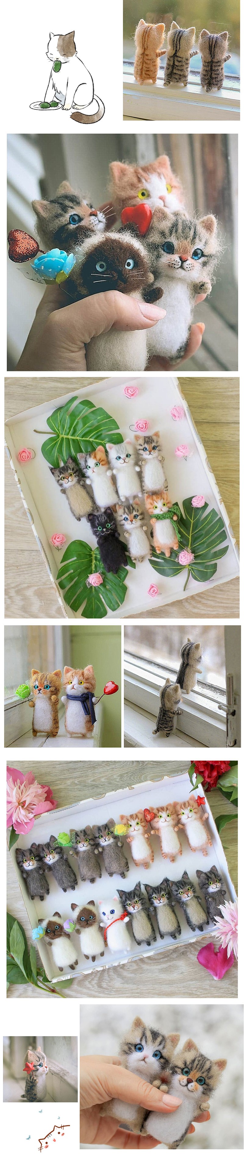Onvoltooide Mode Siamese Hawksbail Tabby Civet Kat Kitty Wol Pop Vrouwen Handgemaakte Naald Vilt Kit Pakket DIY Cadeau Voor Kinderen