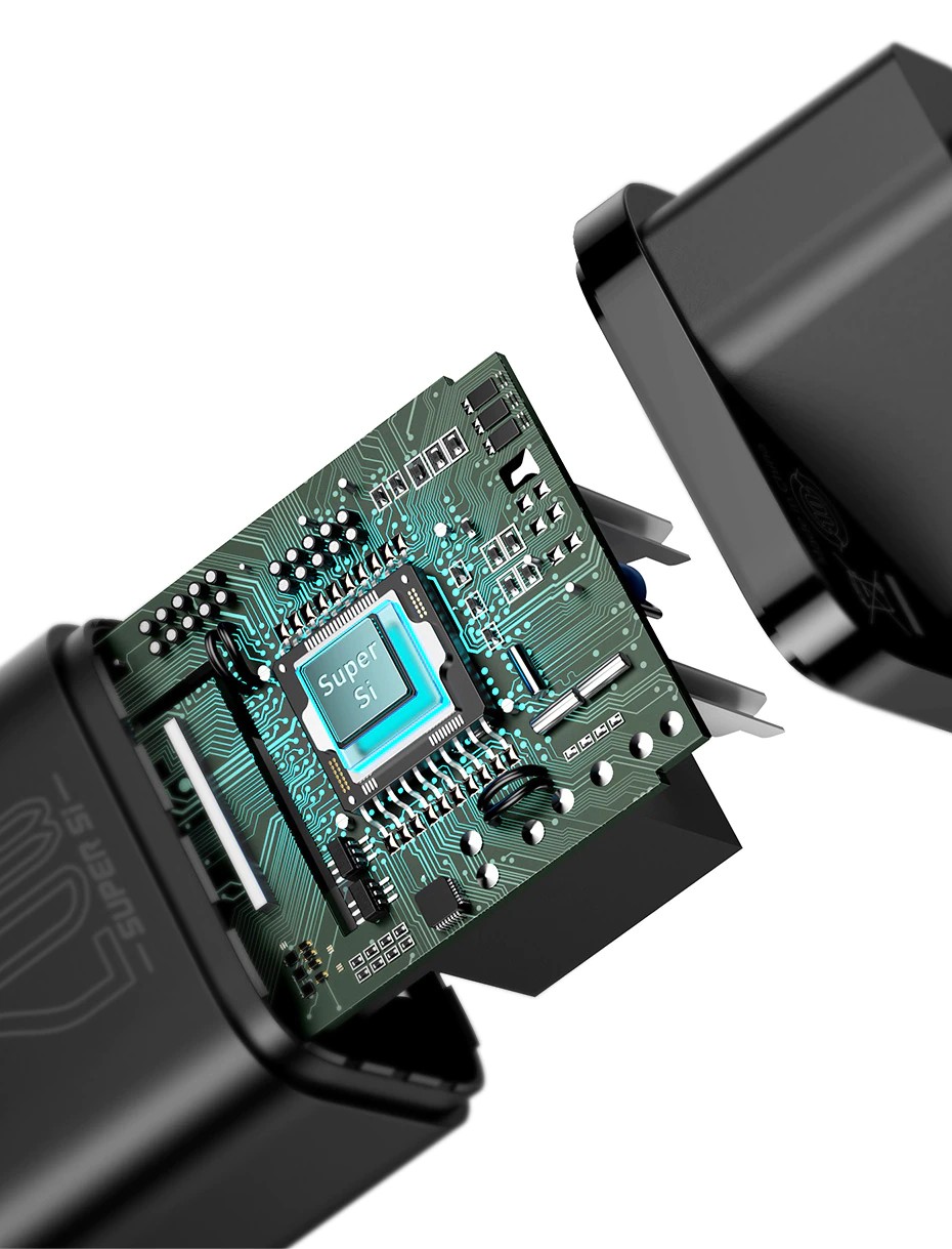 Super Si is een nieuw type van silicium gebaseerde materiaal dat heeft voordelen in dichtheid, thermische geleidbaarheid en efficiëntie conversie. Met Super Si zwart technologie, laders kan kleiner, sneller, en bedienen veilig en betrouwbaar in hoge temperatuur omstandigheden.