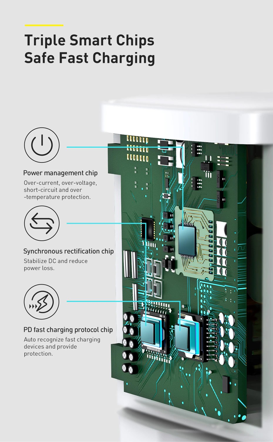 Ondersteuning PD 3.0, QC 3.0, Apple2.4, BC 1.2 en andere snelle opladen protocollen.