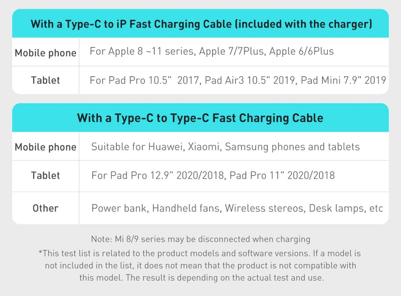 Alle Apple8 en bovenstaande modellen ondersteuning PD snel opladen, die versnelt oplaadtijd door 3 keer in vergelijking met 5V/1A laders.