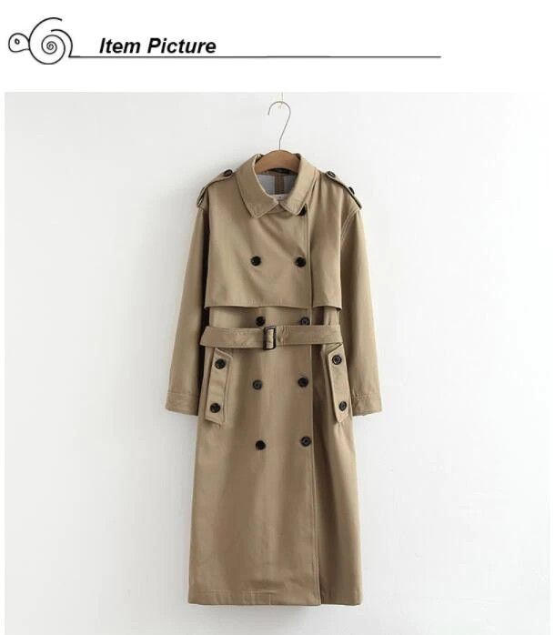 Vee Top Vrouwen Casual Effen Kleur Double Breasted Uitloper Mode Sjerpen Kantoor Jas Chic Epaulet Ontwerp Lange Geul 902229