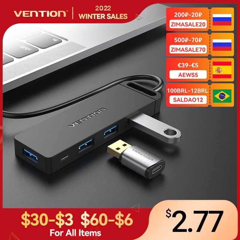 Drag Usb Hub 3.0 Multi Usb Splitter 4 Usb-Poort 3.0 2.0 Met Micro Lading Power Voor Lenovo Xiaomi Macbook Pro Pc Hub Usb 3 0