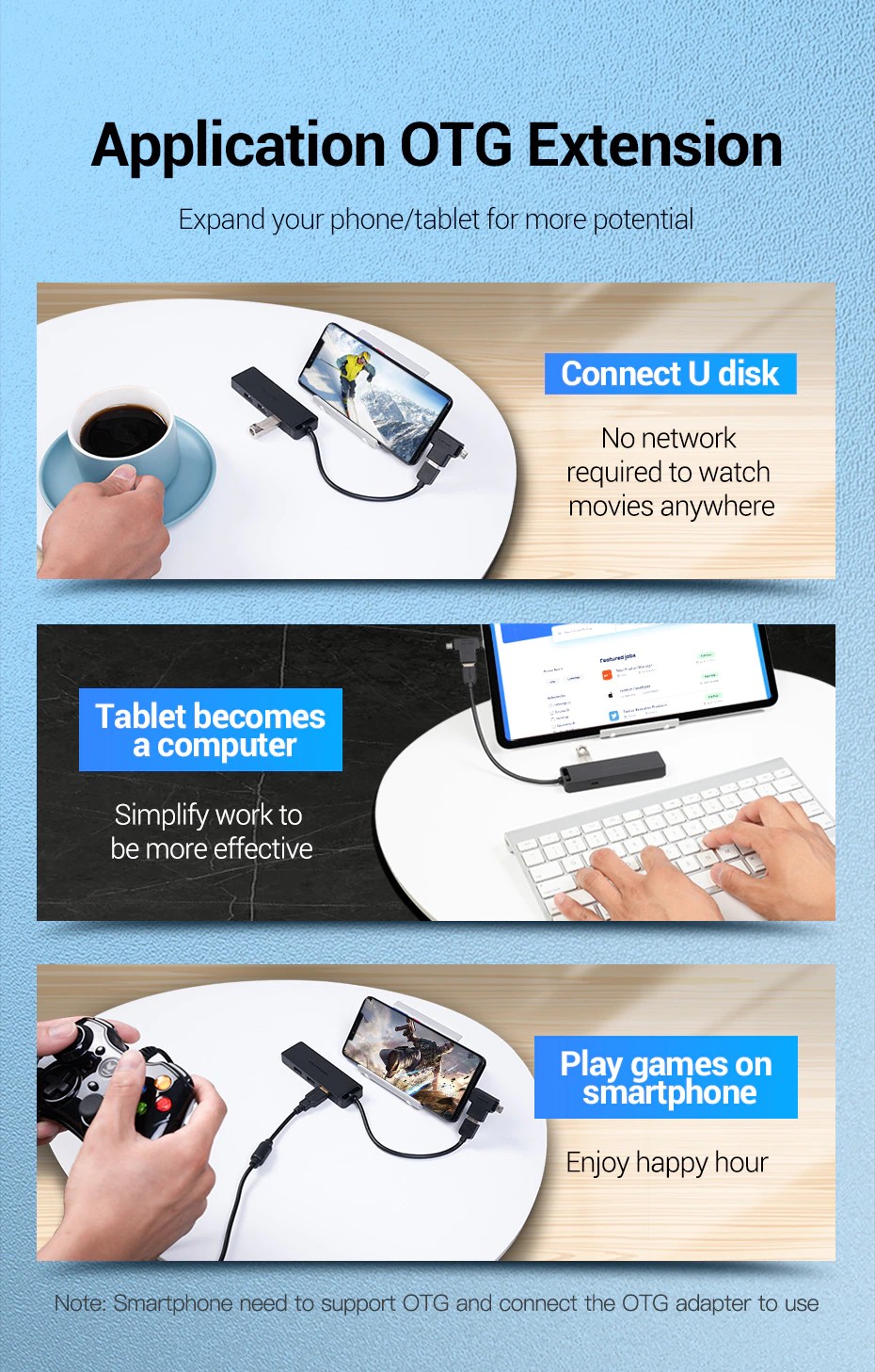 Opmerking: Smartphone moet ondersteuning OTG en sluit de OTG adapter te gebruiken