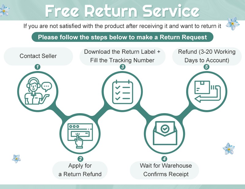 3. als er een probleem met het item, neem dan gerust contact met ons, we zijn blij om tegemoet terug en uitwisselingen binnen 15 dagen op alle items zonder schade.