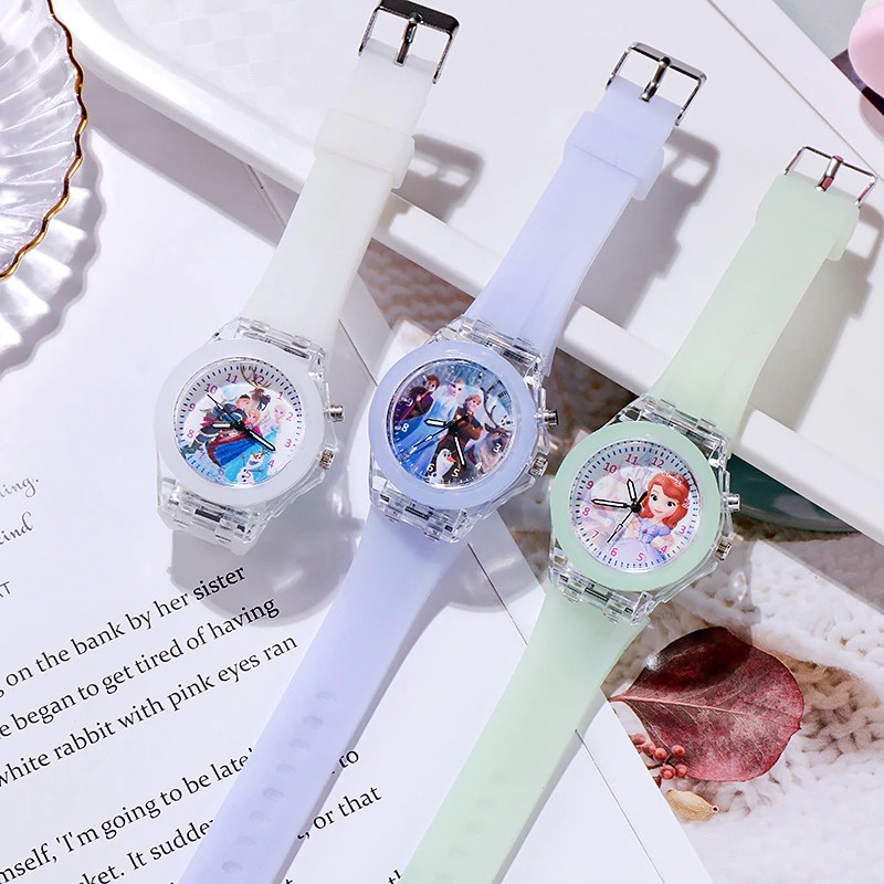 Disney Frozen Horloge Prinses Aisha Kinderen Lichtgevende Horloge Student Siliconen Kleurrijke Verlichting Horloge Cadeaus Voor Meisjes Kids Horloges