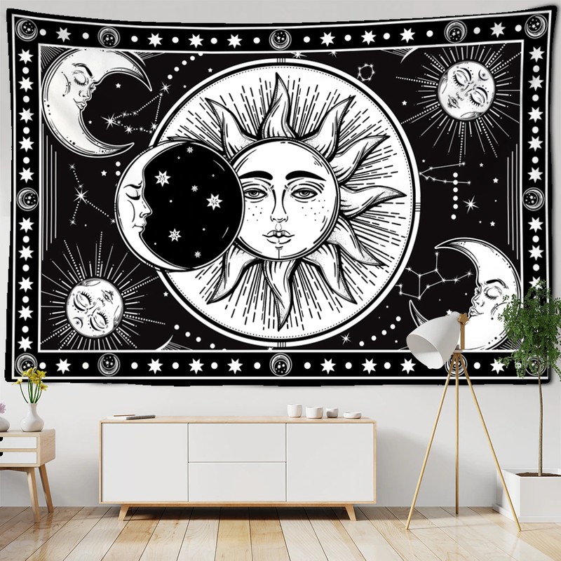 Wit Zwart Kleurrijke Zon Maan Mandala Tapijt Muur Opknoping Celestial Wandtapijten Hippie Muur Tapijten Dorm Decor Muur Tapestr