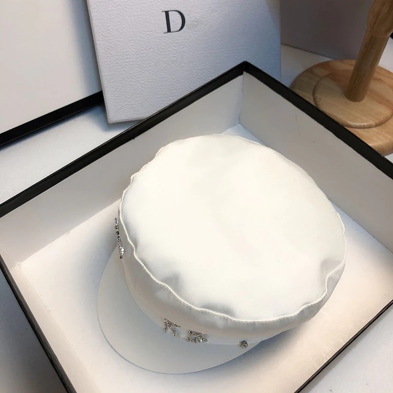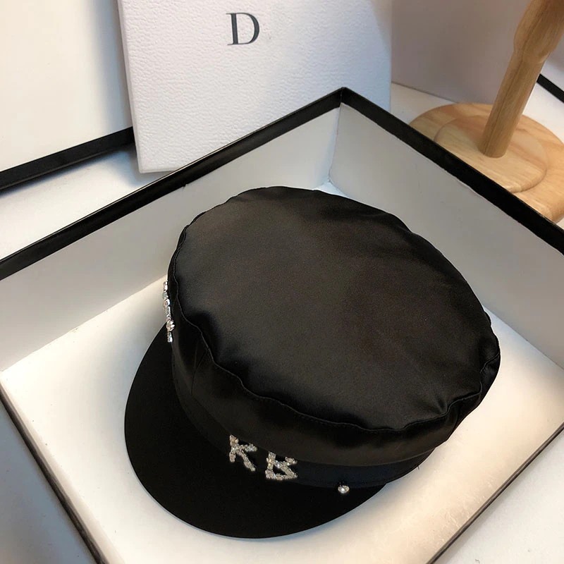 Fibonnaci Witte Hoeden Voor Vrouwen Lente Zomer Rhinestone Alfabet Militaire Hoed Mode Causale Reizen Satin Flat Top Cap Zwart