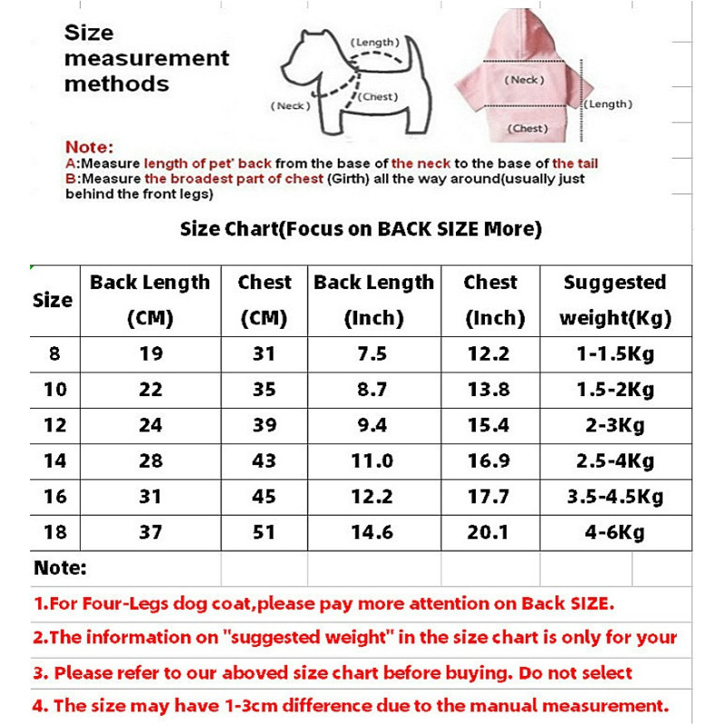 | 1. voor Vier Poten hond jas, gelieve meer aandacht op Back MAAT. | ||||||