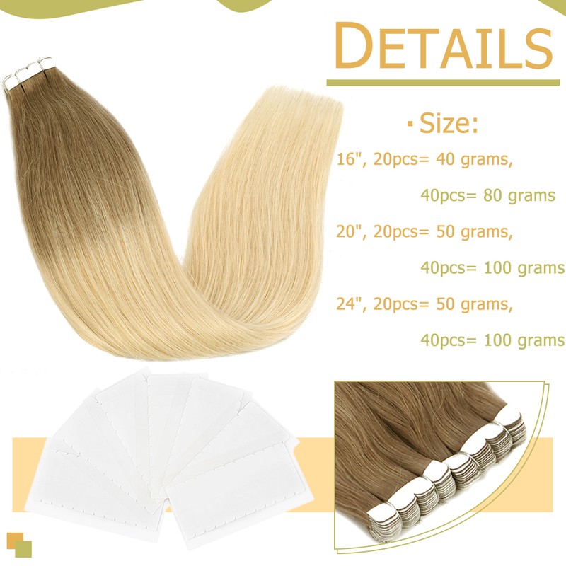 Andere beschrijvingen: Wij garanderen 100% menselijk haar. Hoge kwaliteit, zeer concurrerende prijs. Kleuren kunnen look beetje anders op elke monitoren. Tape haar is zeer eenvoudig aan te brengen en kan direct worden toegepast op parted gebieden van het hoofd. Het is eenvoudig, volledig onzichtbaar en geven alle natuurlijke uitstraling. Het lijkt alsof het haar groeit uit je eigen hoofdhuid Het haar is hand genaaid in een een duidelijke huid basis en dan, is bevestigd aan een duurzame dubbelzijdige onzichtbare tape. 40-60 stuks voor een volledige hoofd. U kunt kiezen lengte en kleur wat je wilde.