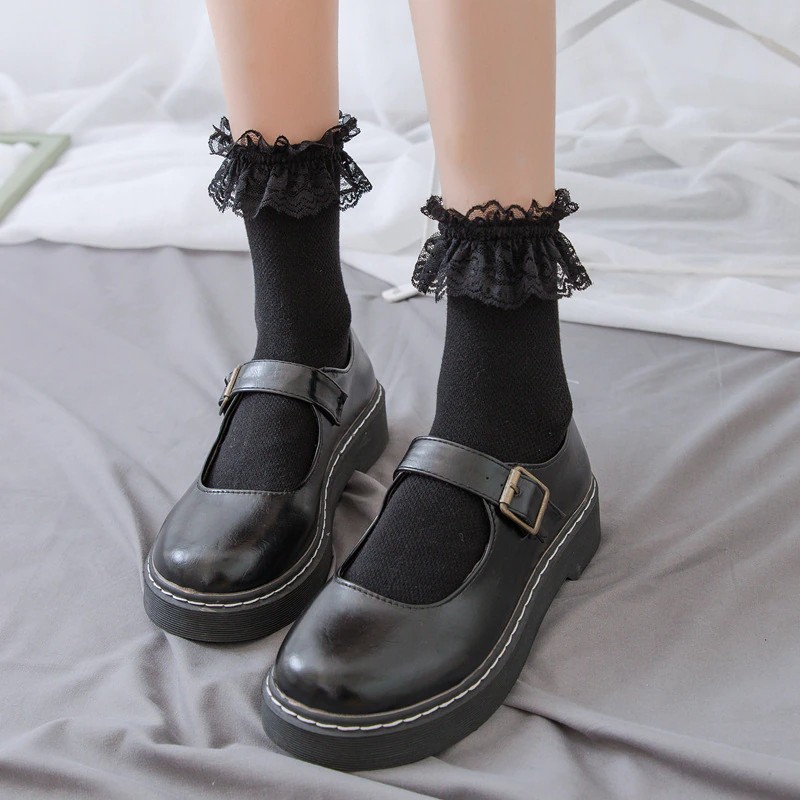 Vrouwen Lace Mesh Zwart Wit Katoenen Sokken Lolita Stijl Japanse Maiden Mooie Korte Sokken Harajuku Stroken Ruffle Prinses Sokken