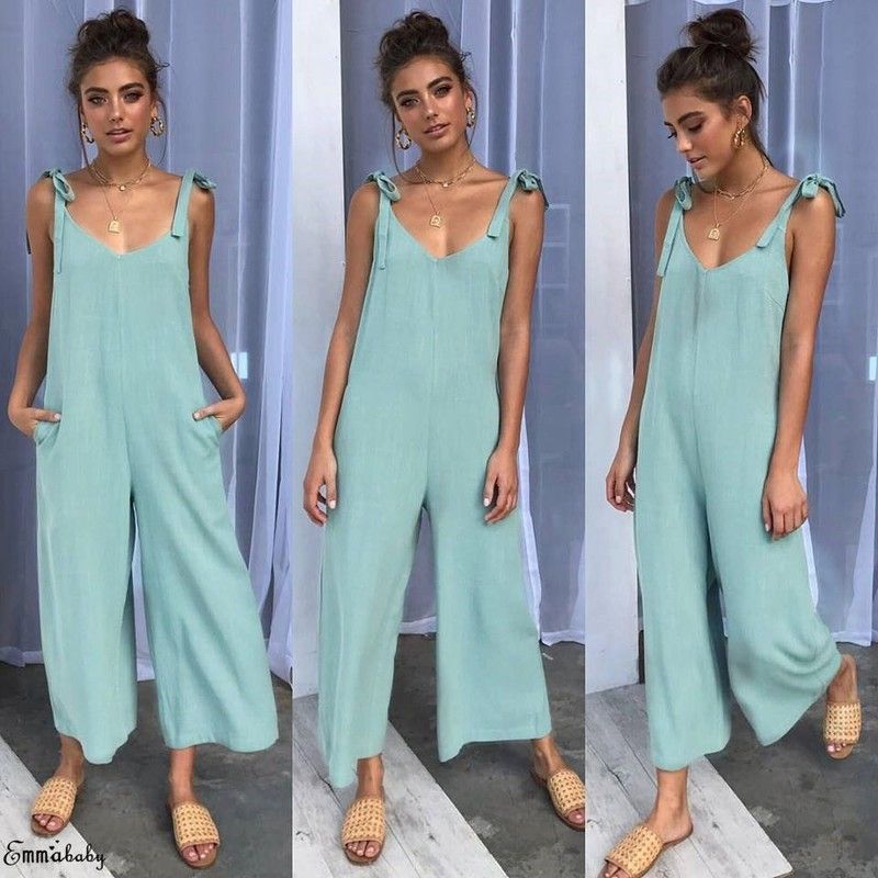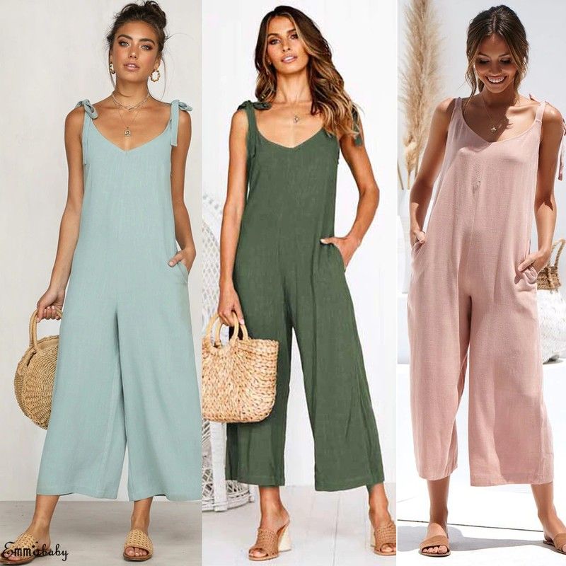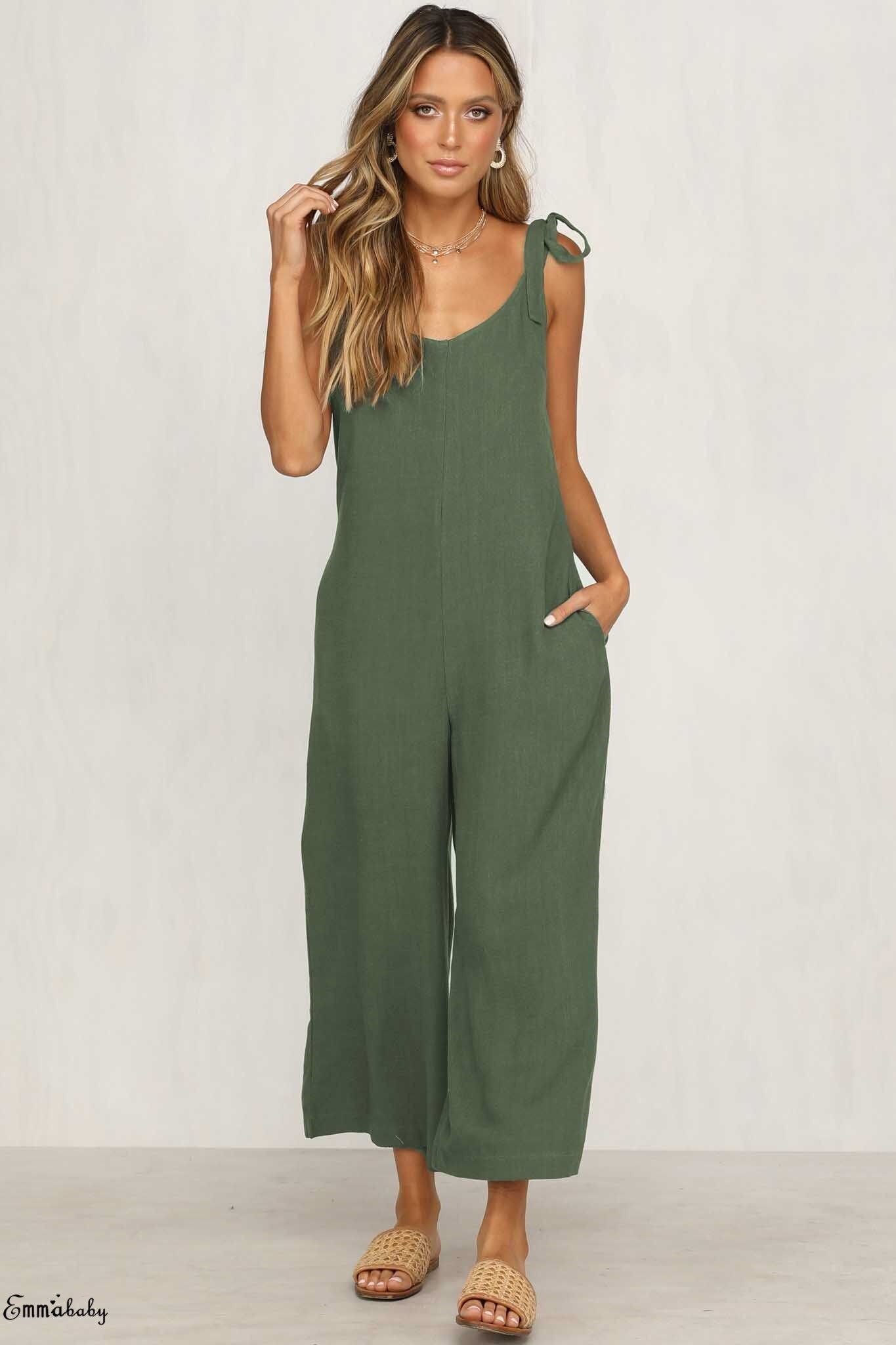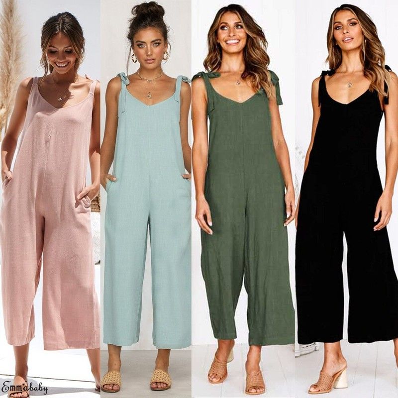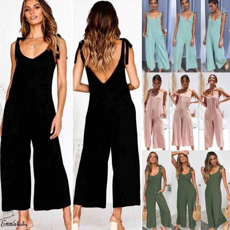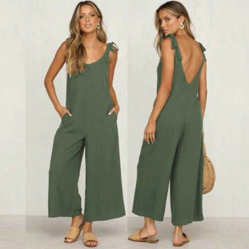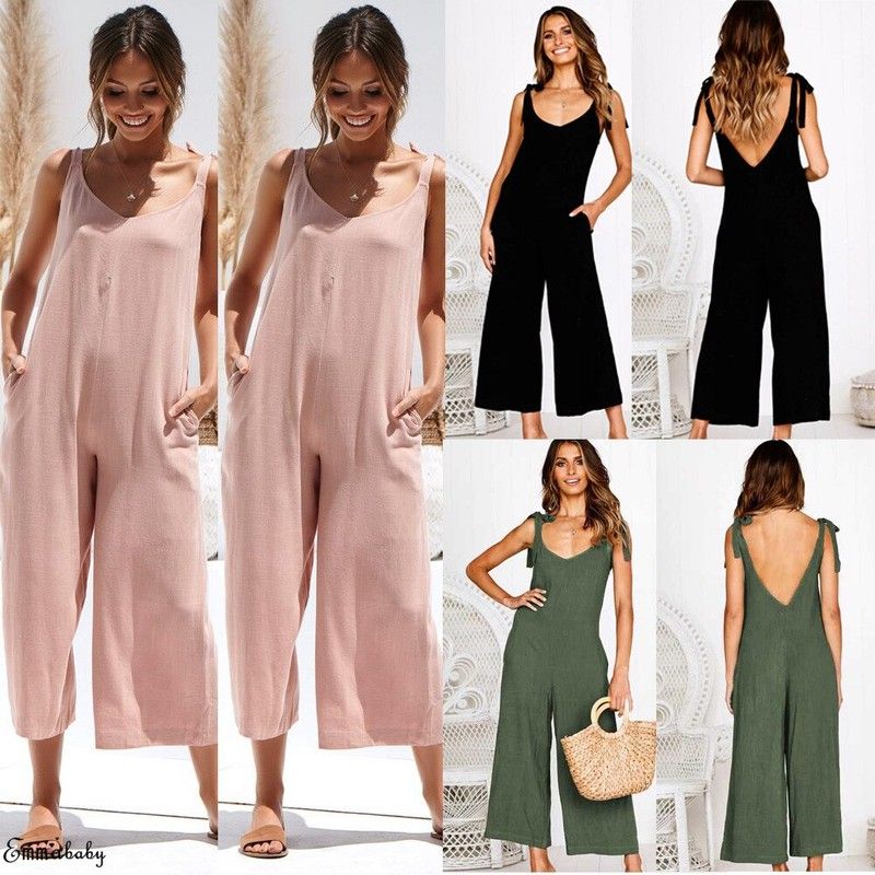 Vrouwen Rompertjes Laatste Zomer Nieuwe Dames Casual Kleding Losse Linnen Katoen Jumpsuit Mouwloos Backless Playsuit Broek Overalls