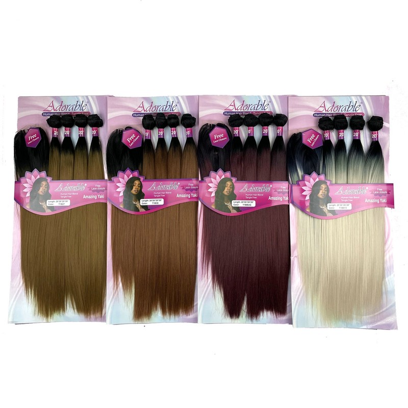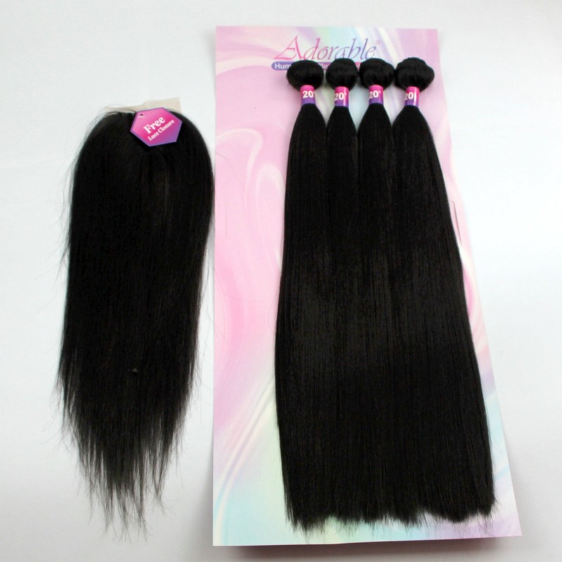 Schattige Yaki Rechte Hittebestendige Vezel Natuurlijke Kleur Zachte Synthetische Packet Haar Met Gratis Machine Sluiting Verbazingwekkende Yaki 4Pcs