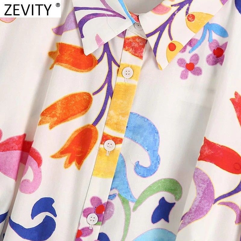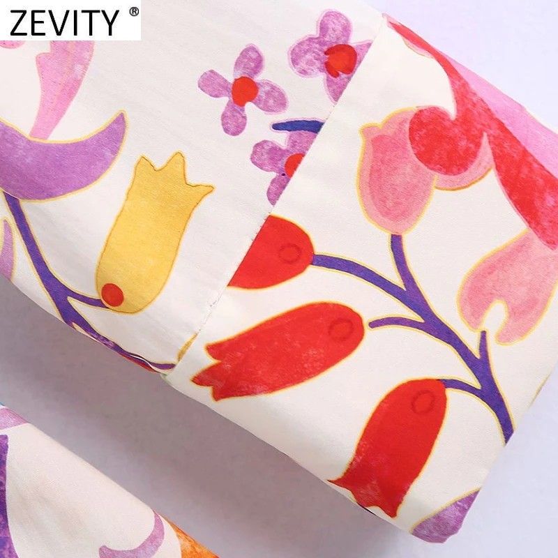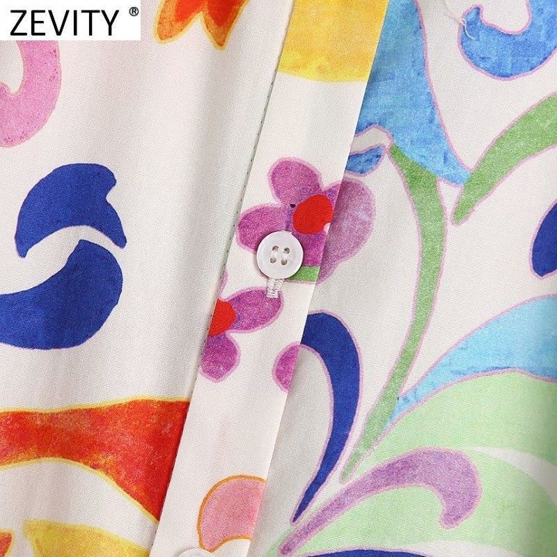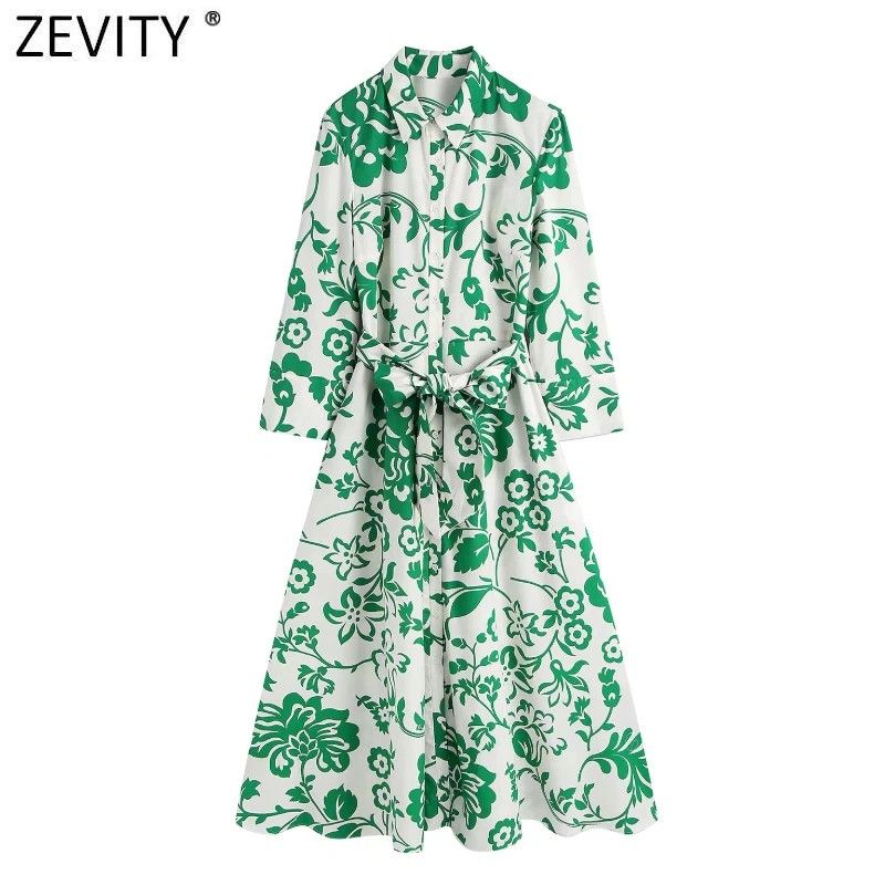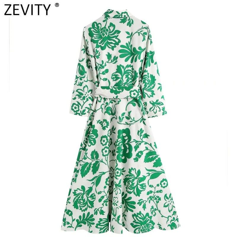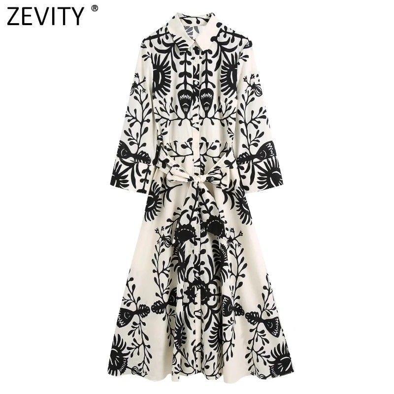 Zevity Vrouwen Vintage Totem Bloemenprint Boog Sjerpen Midi Shirt Jurk Vrouwelijke Chic Drie Kwart Mouw Casual Slim Vestidos Ds8361