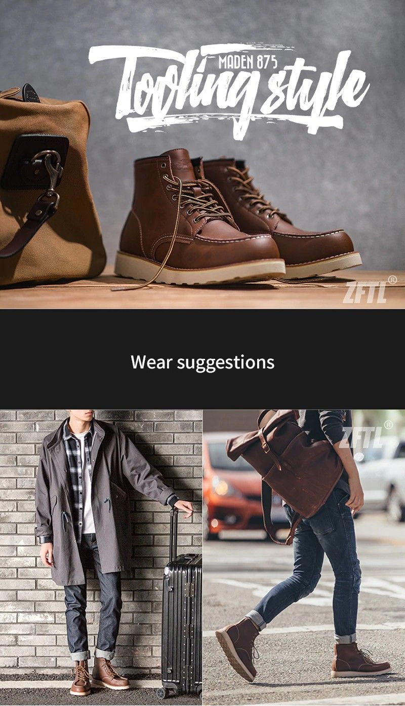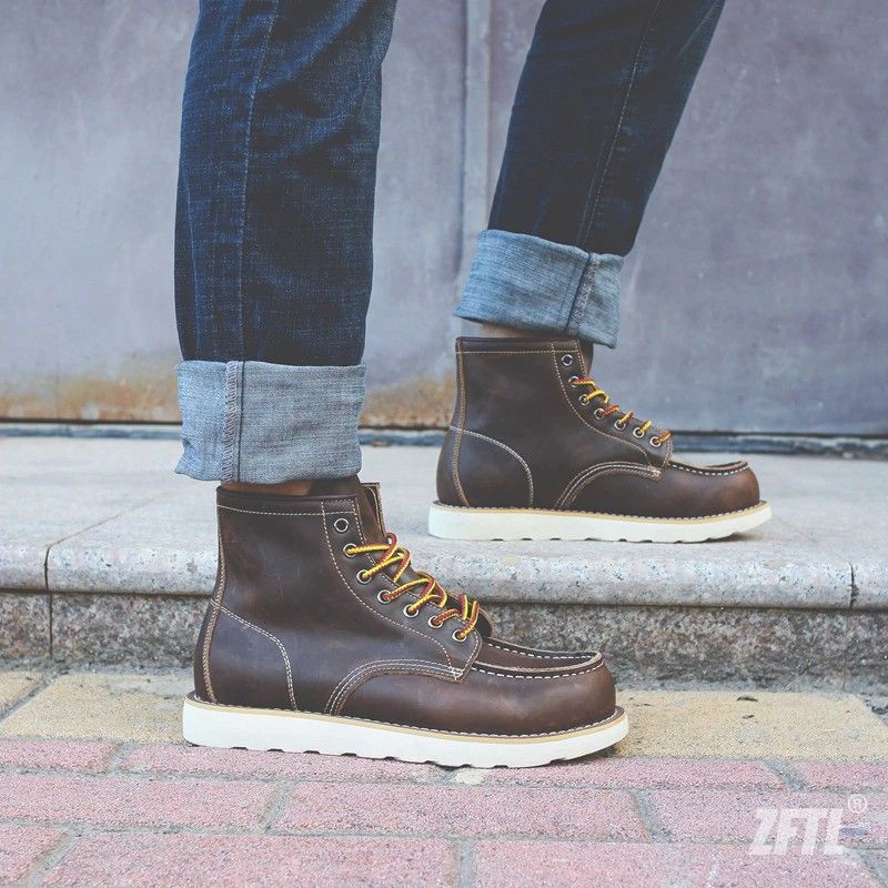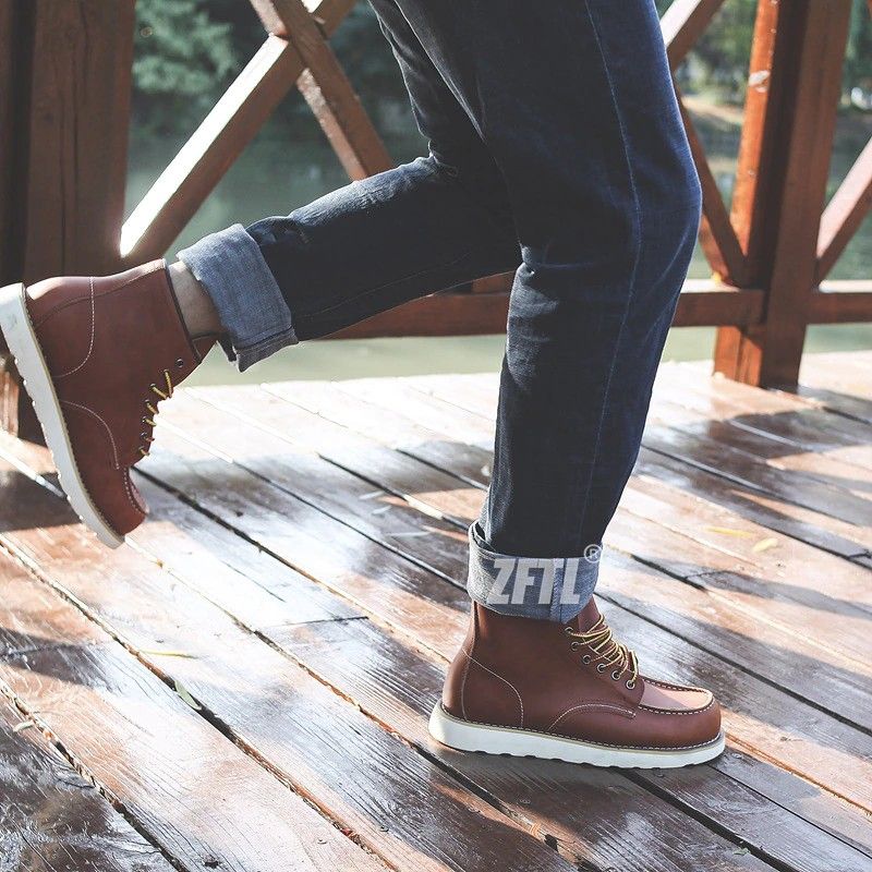 Zftl Mannen Martins Laarzen Amerikaanse Retro Gereedschap Laarzen Casual Crazy Paard Lederen Mannen Laarzen Vintage Man Lace Up Enkellaarsjes