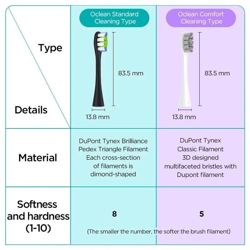1. Oclean Standard Cleaning Type DuPont Tynex Brilliance Pedex Triangle Filament