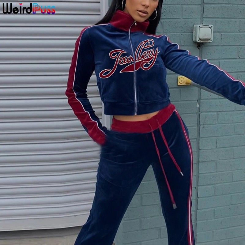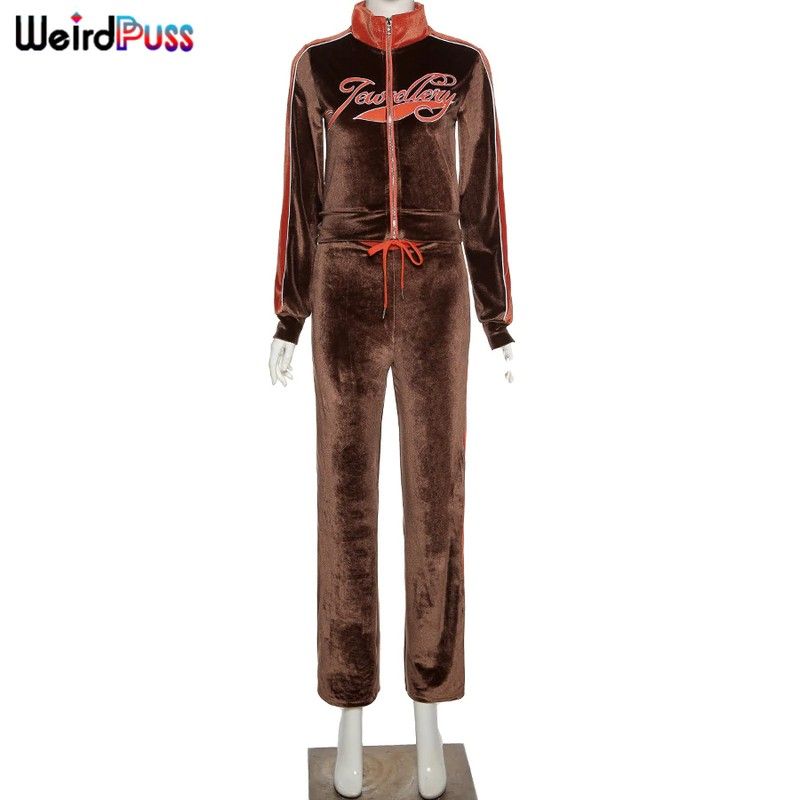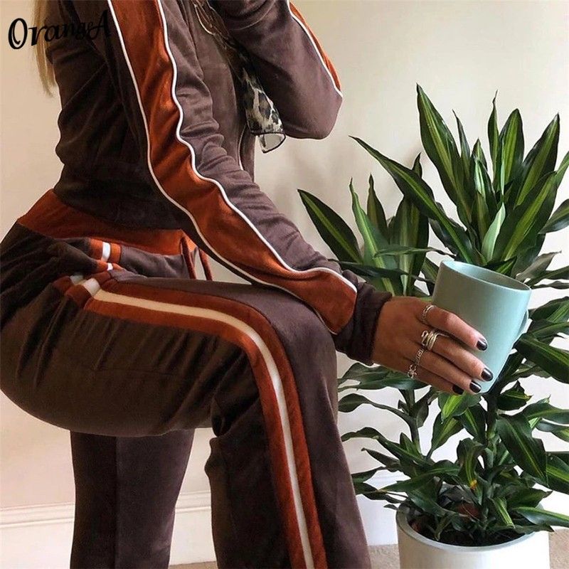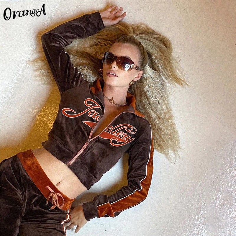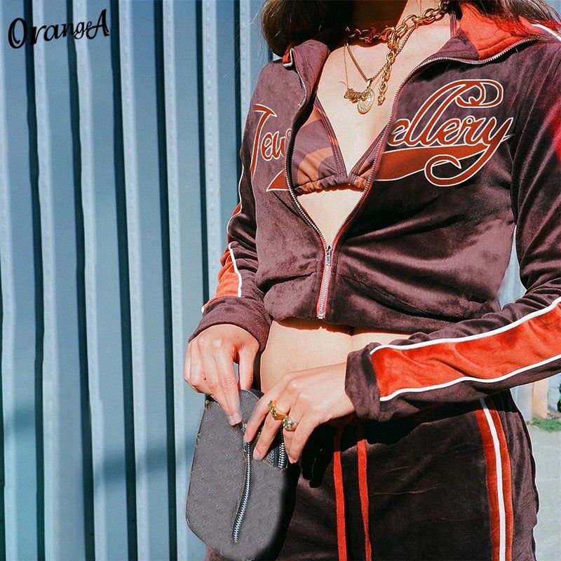 Orangea Women Tracksuit Letter Print Velvet 2 Piece Outfit Sweatshirt+Straight Sweatpants Matching Set Fitness Sporty Streetwear