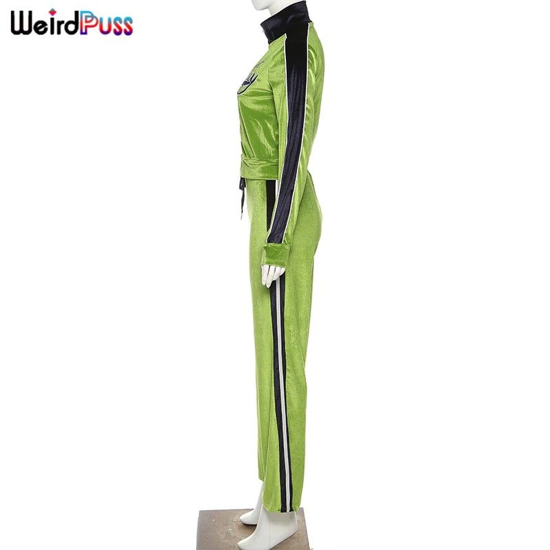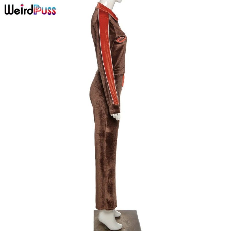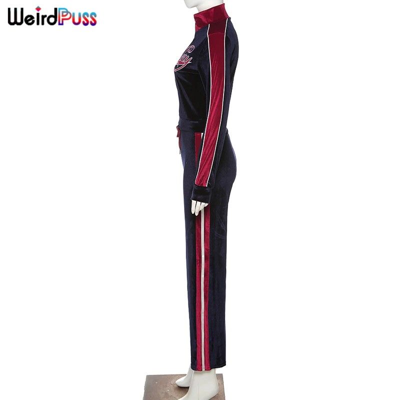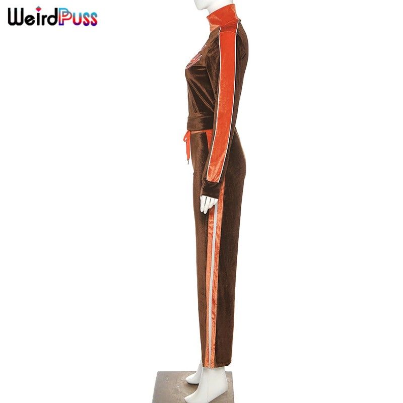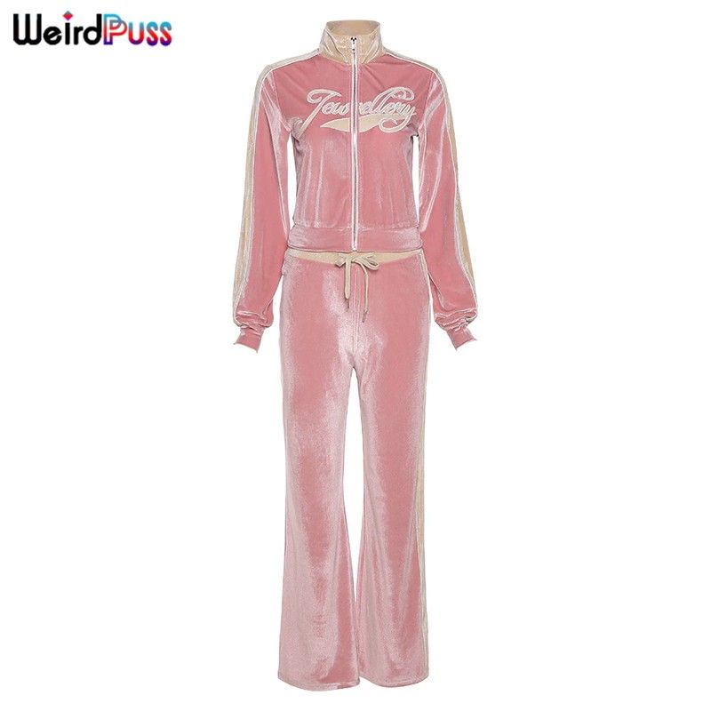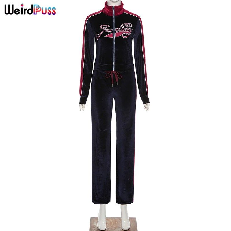 Orangea Women Tracksuit Letter Print Velvet 2 Piece Outfit Sweatshirt+Straight Sweatpants Matching Set Fitness Sporty Streetwear