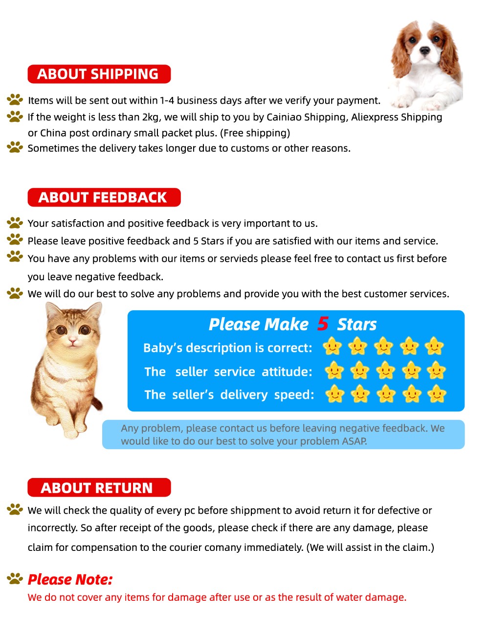 Please measure your pet size accurately before placing an order. Or you can measure the maximum value of your pet's back and find the right size. Reminder: Due to the long arrival time of international logistics, if your pet is still a puppy or a kitten, we recommend that you can purchase the size of the larger one. Thanks.