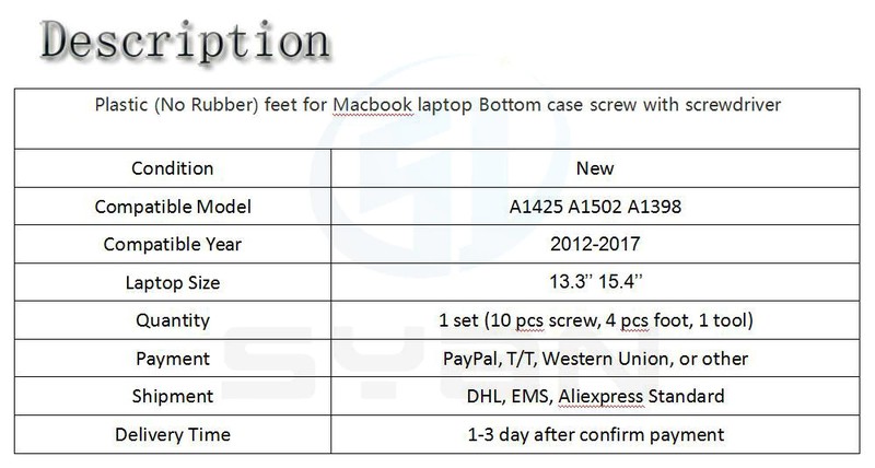 Plastic (No Rubber) Feet + Bottom Case Cover Screw + Screwdriver For Macbook Pro Retina A1425 A1502 A1398 Foot Screw + Kit