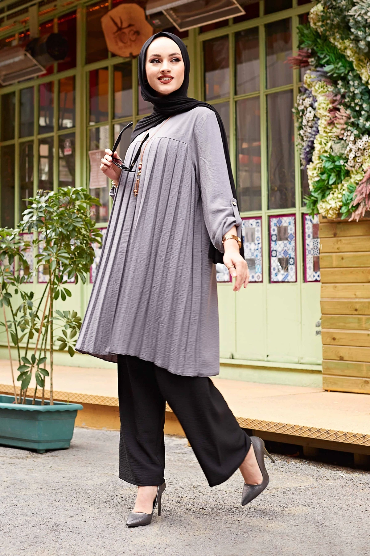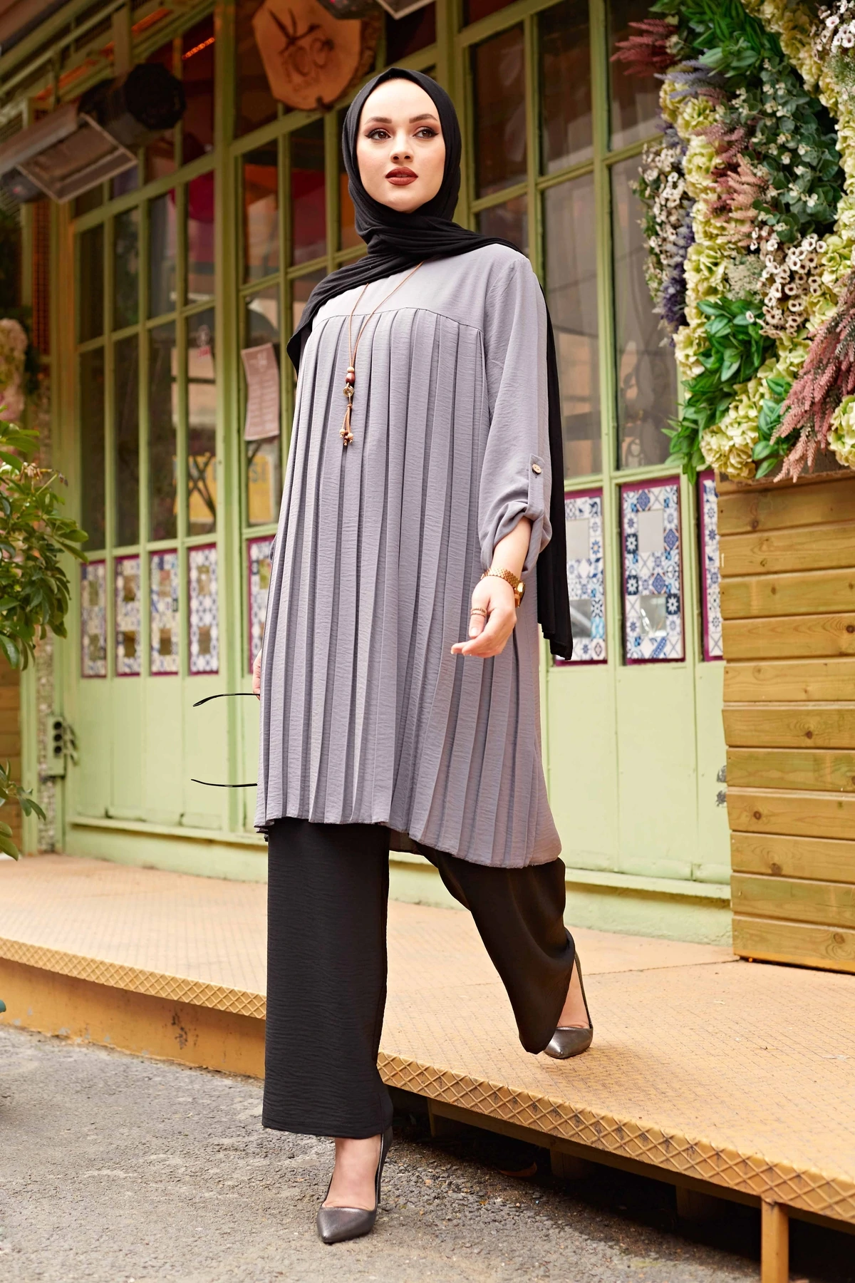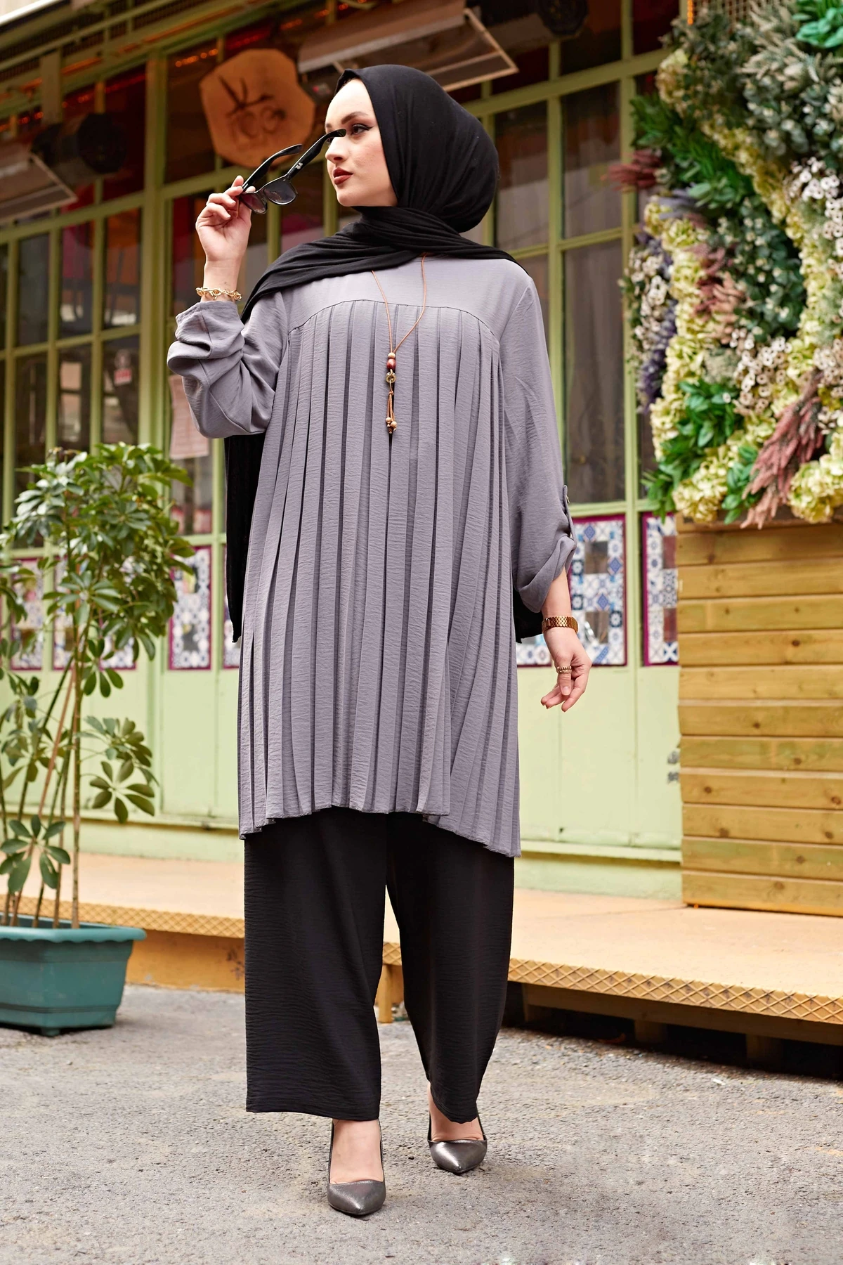 Pleated Tunic Gray Women Long Sleeve Plus Size Tops Abaya Dubai Vintage Blouse Plaid Summer Spring Warm Shirt Clothes Ladie