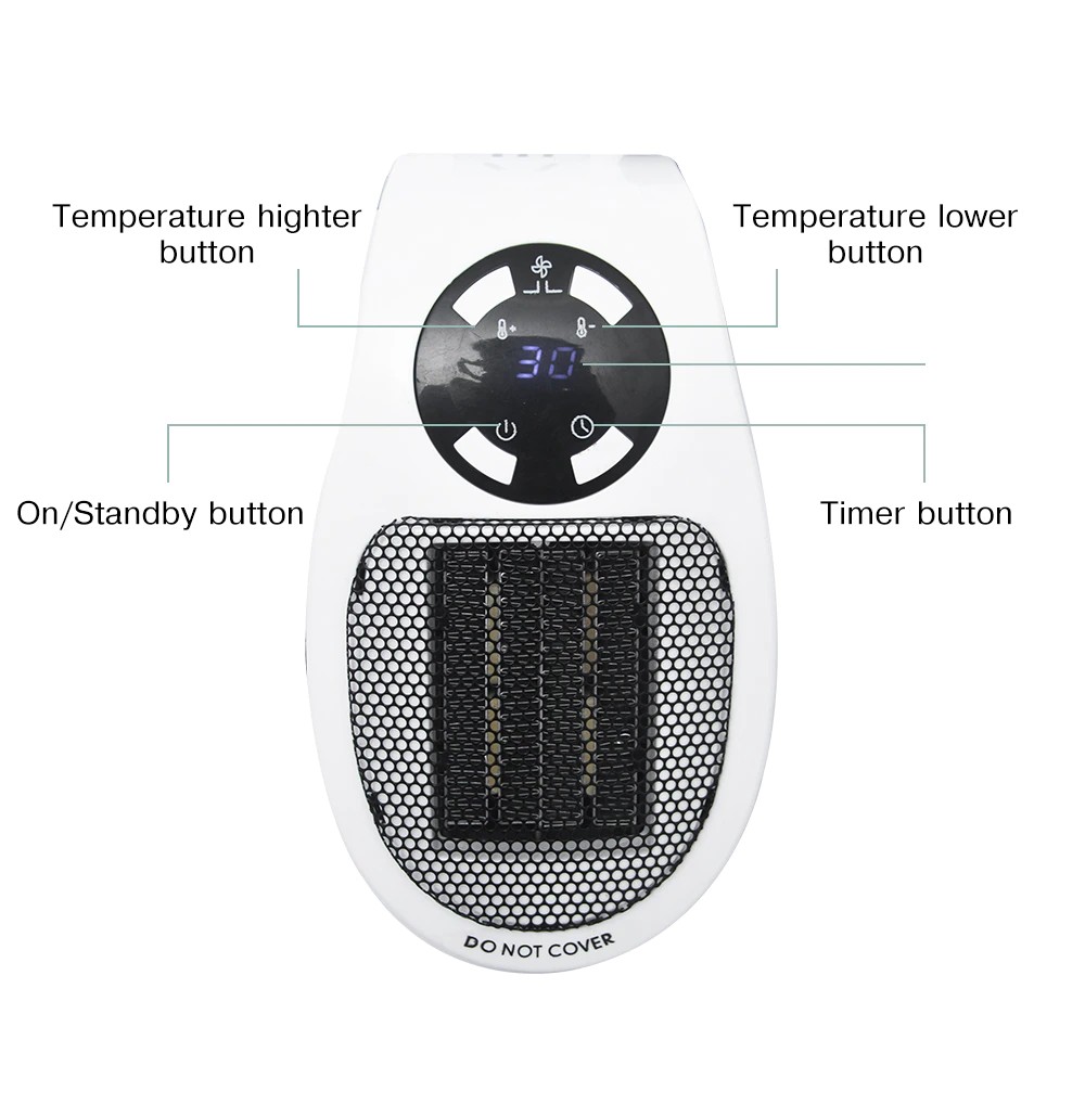 Portable Electric Heater Plug In Wall Heater Room Heating Stove Household Radiator Remote Warmer Machine 500W Device