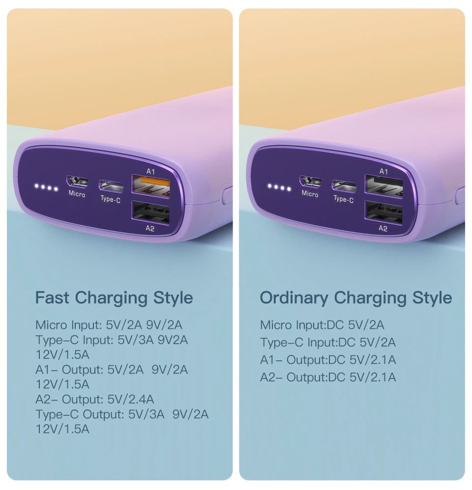 Micro input: 5V/2.0A Type-C input: 5V/2.0A
