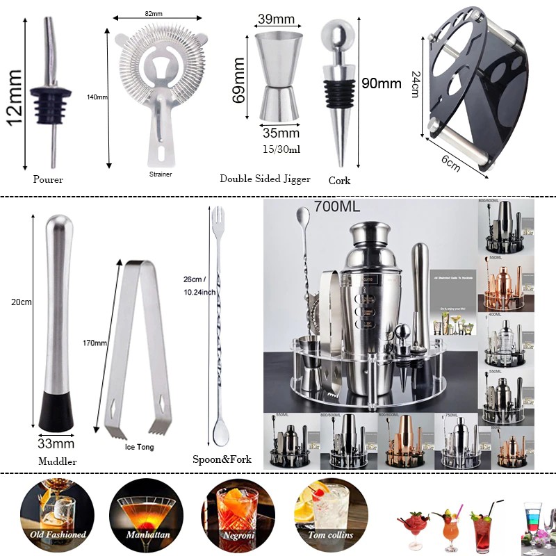 4. kit de agitador de coquetel completo-o conjunto shaker de coquetel tem ferramentas básicas suficientes para eliminar a necessidade de comprar outros acessórios desnecessários de ferramentas de bar.