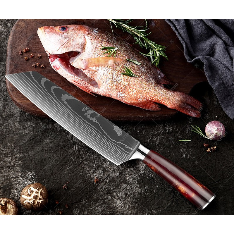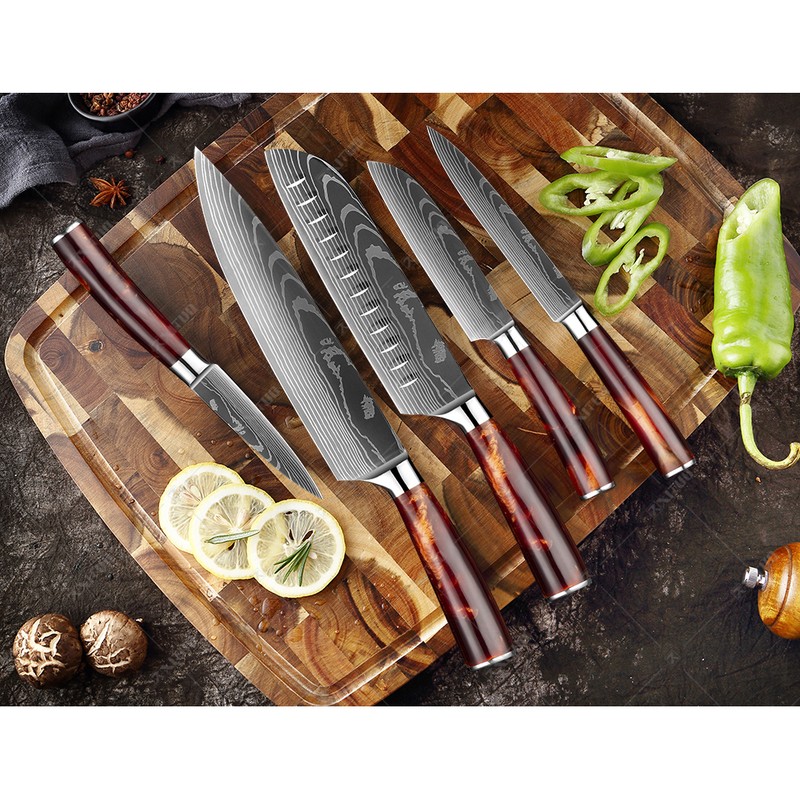 Xituo 1-10 Pçs Conjunto De Facas De Cozinha Padrão Damasco Laser Faca Do Chef Afiada Santoku Cutelo Facas Utilitárias Corte Resina Punho