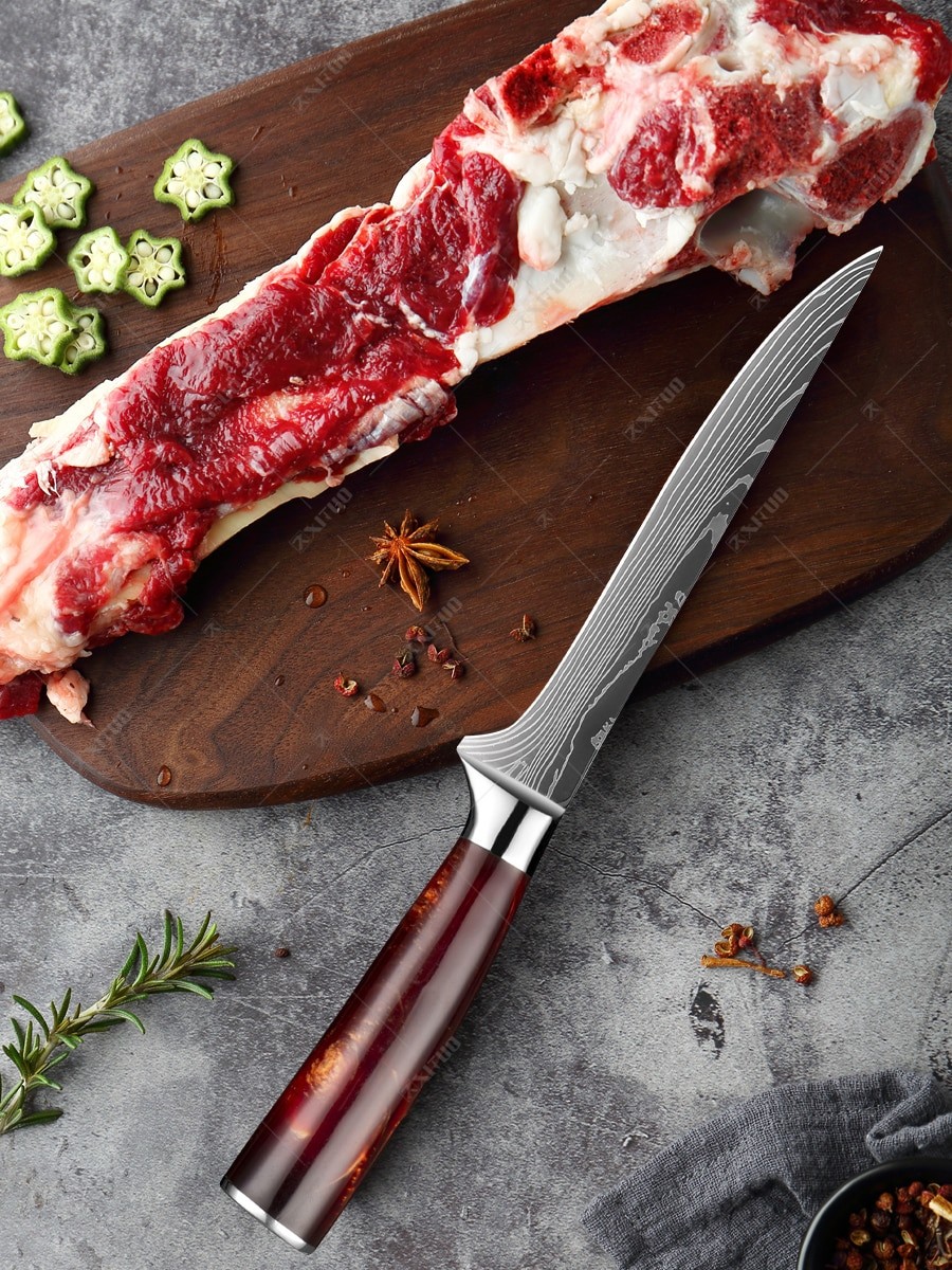Dicas: a lâmina é de aço inoxidável, a superfície do padrão de damasco laser, muito bonito, bom acabamento, navalha afiada, manter sua cozinha longe da faca sem corte, e desfrutar de sua vida na cozinha!
