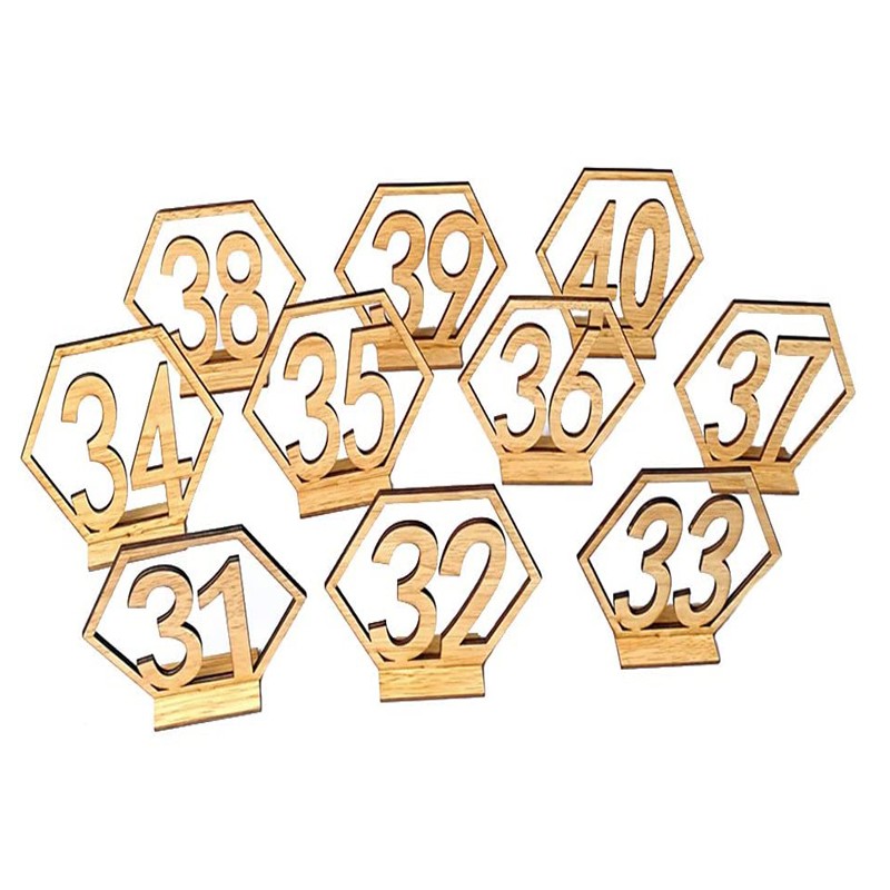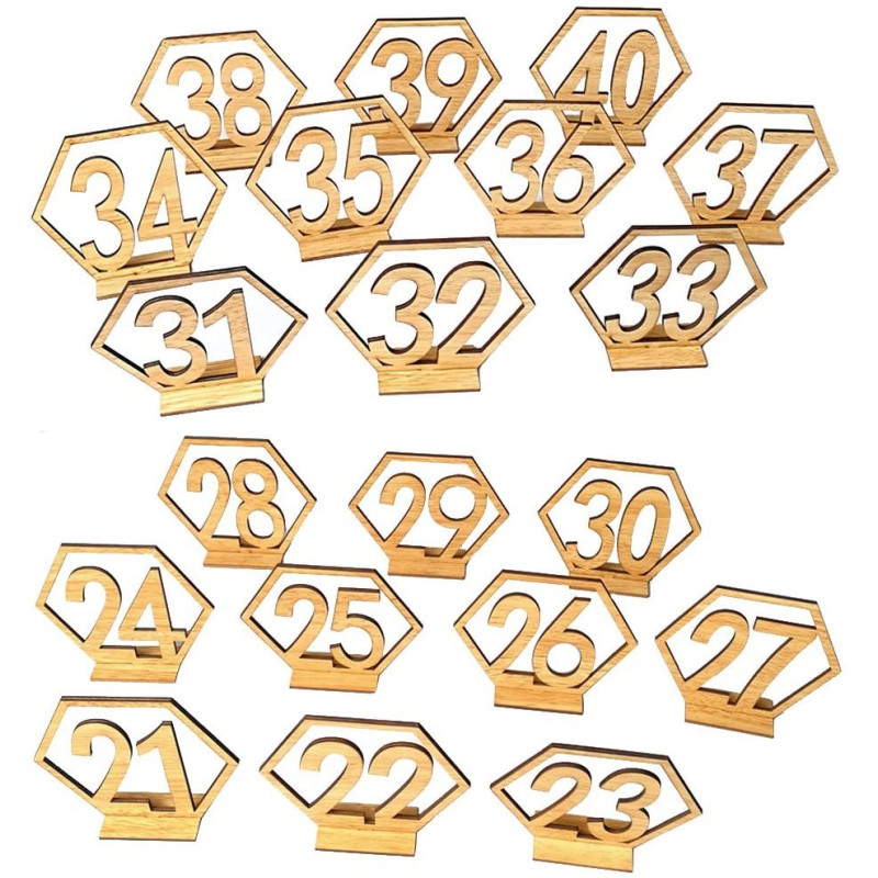 1-40 Números De Mesa De Madeira Forma Do Hexágono Com Base Do Suporte Para A Festa De Casamento Eventos Catering Decoração Suprimentos