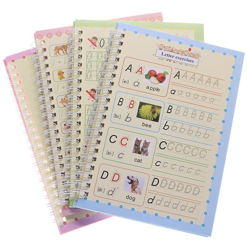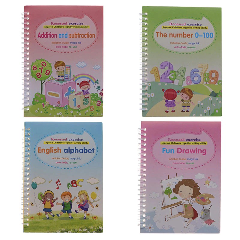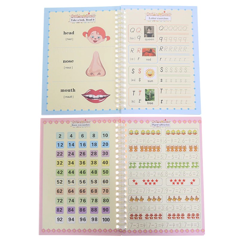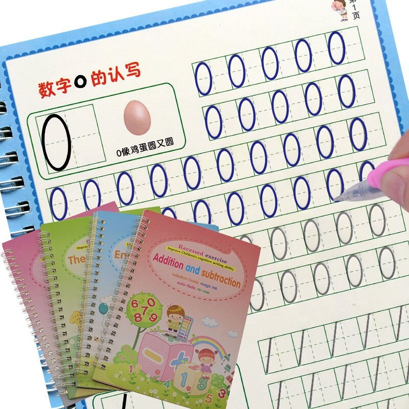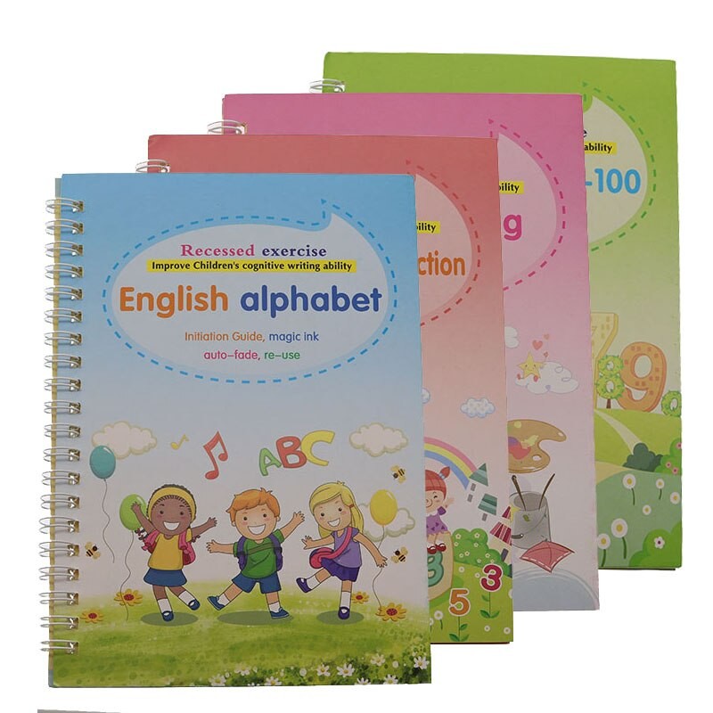 (1 Conjunto/4 Livros E Caneta) Magia Livro De Trabalho Crianças Brinquedos De Escrita Com Adesivos Montessori Caligrafia Brinquedos Inglês Notebook