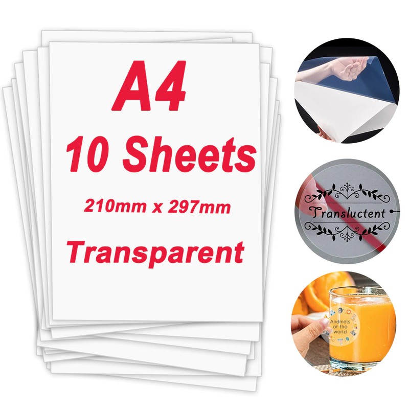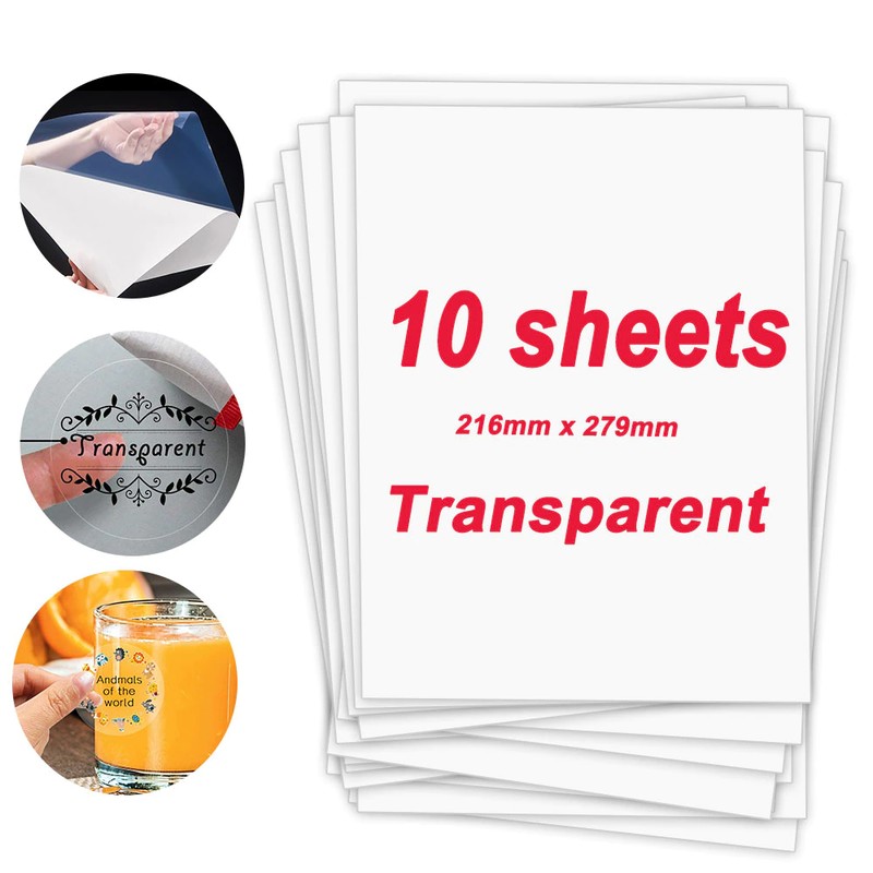Folhas De Papel Adesivo De Vinil Transparente Para Impressão 10 216*279 Milímetros Papel Impressão Auto-Adesivo À Prova D' Água Diy Etiqueta Para Impressão A Jato De Tinta