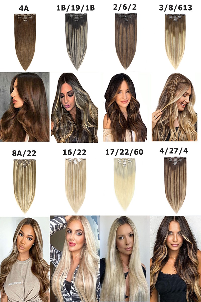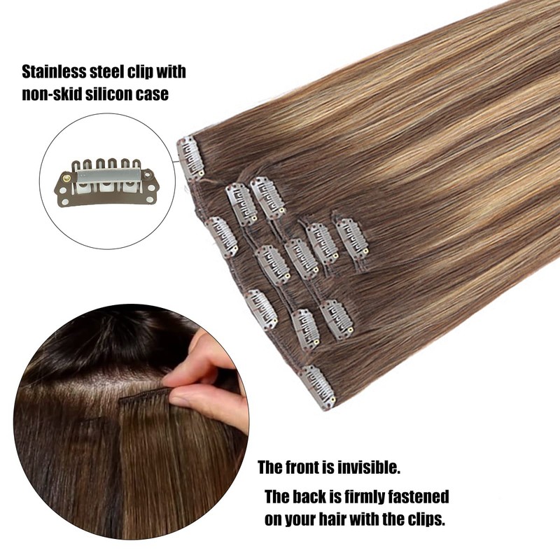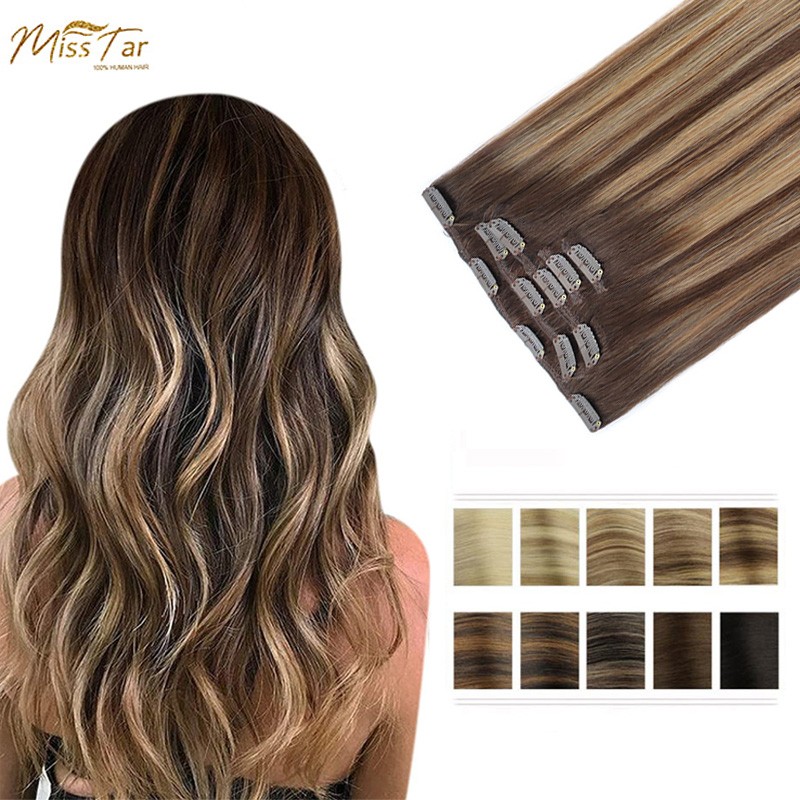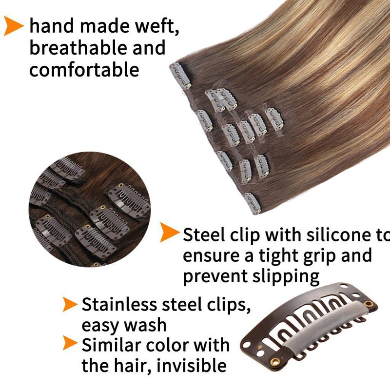 Cabelo Humano, Mega Hair Cabelo Humano, Human Hair Clip, 100% Grampo Humano Em Extensões De Reto Remy Natural Preto Claro Marrom Mel Ombre Extensões De Cabelo Com Grampos 75G-85G
