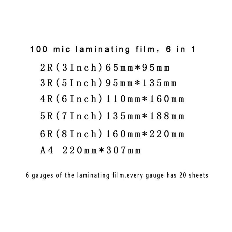 100Microfone 6 Tamanhos (3 &Quot;5&Quot; 6 &Quot;7&Quot; 8 &Quot;A4), Filme Laminador Térmico Pet + Eva Plastificador, 120 Peças Para Rolo Laminador De Plástico