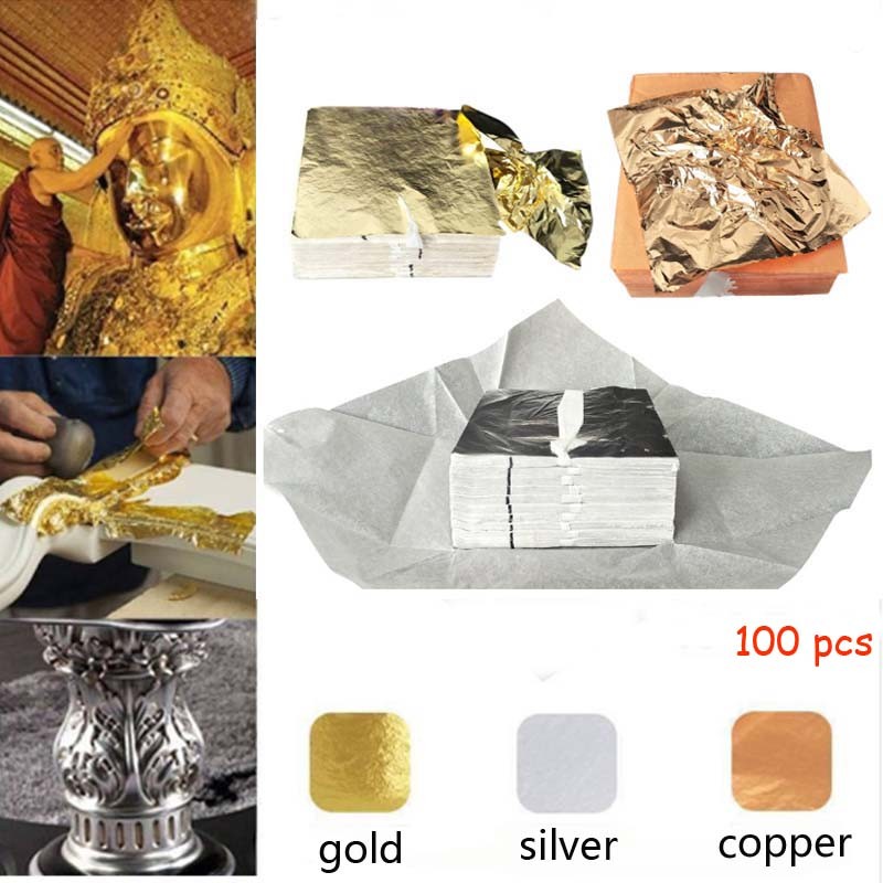 Papel Folha De Cobre Com 100 Peças, Artesanato Arte Design, Folha De Papel Ouro Folha Cobre Decoração Diy Para Artesanato, Folhas De 14X14Cm