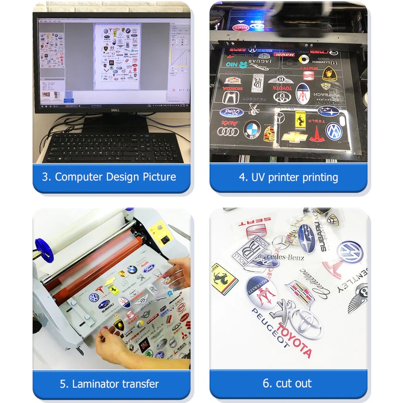 Resposta: você precisa de uma impressora uv e uma máquina de estratificação. Depois de comprar filme ab, você pode imprimir e fazer adesivos de transferência. Nossa loja vende máquinas de estratificação e impressoras uv.