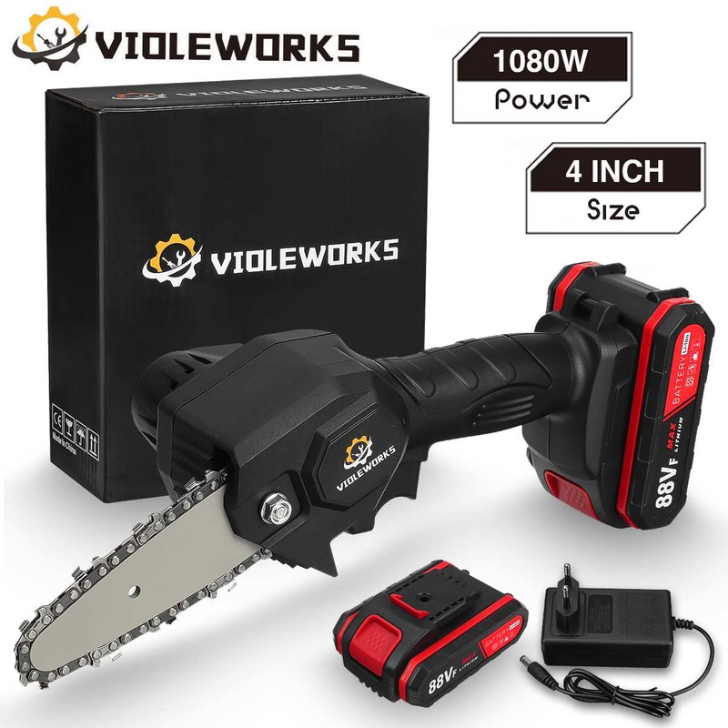 1080W 4 Polegada 88Vf Mini Serra Elétrica Com 1/2 Bateria Atualizada Recarregável Carpintaria Poda Serra De Uma Mão Ferramenta De Jardim