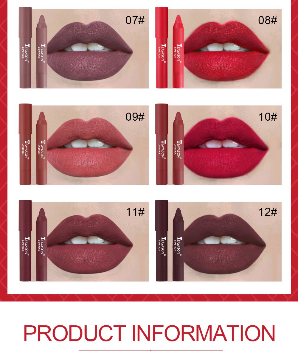 Batom Cosmético Aveludado Fosco 12 Cores, Batom À Prova D'Água De Longa Duração Nude Não Pegajoso Bálsamo Labial Durável Caneta Marrom