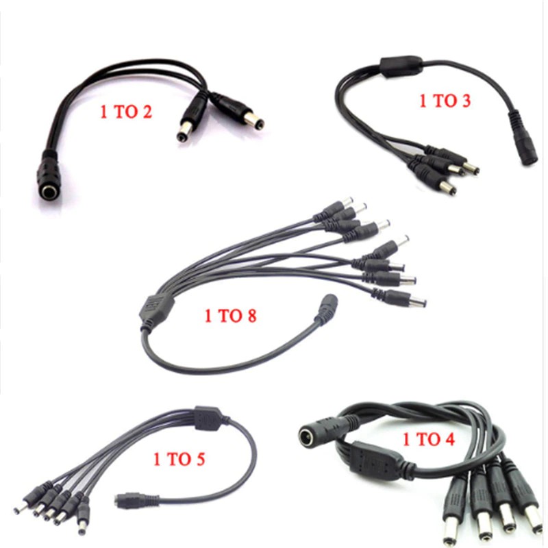 Plugue divisor de energia 12v dc 1 fêmea para 2 3 4 5 6 8 macho cctv cabo câmera cabo cctv acessórios adaptador de fonte de alimentação 2.1*5.5mm