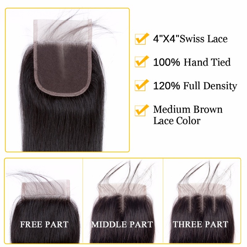 4x fechamento superior do laço de 4 polegadas, o couro cabeludo humano o mais acessível mas visble. costurado com cabelo humano 100% e laço do siwss. Seja usado para cobrir a trama do cabelo de forma eficaz ou fazer uma peruca natural.