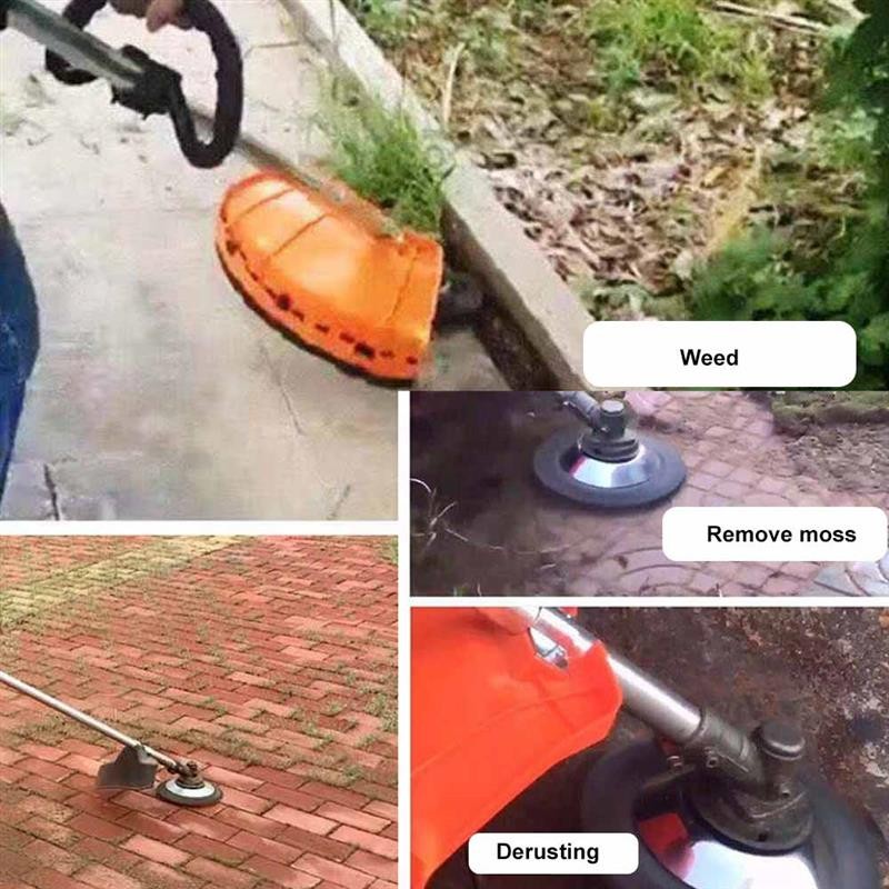 Com fios de aço torcidos em vez de lâminas, esta cabeça do aparador pode eficientemente remover todo o musgo e ervas daninhas desarrumadas em seu gramado, jardim, passarelas; especialmente aplicável à estrada de tijolos, pedra de pavimentação, juntas do pavimento.