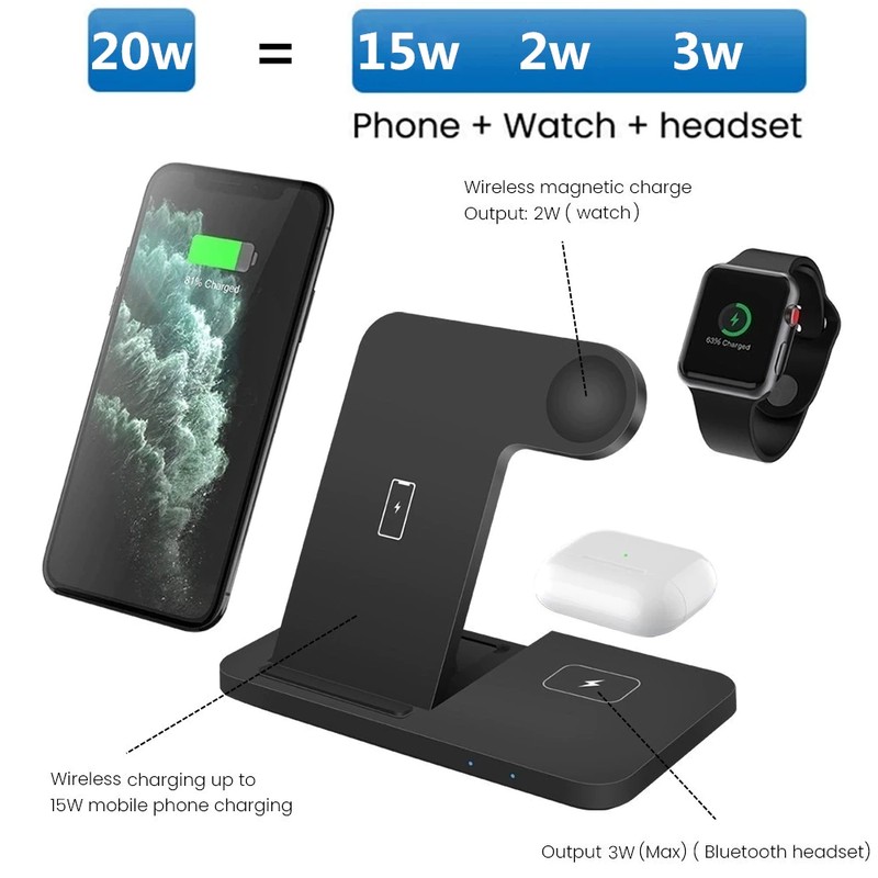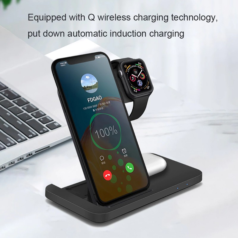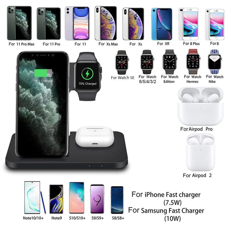 1. este 3-em-1 carregador sem fio suporta o telefone inteligente e apto para apple watch 2/3/4/5/6/se. Além disso, ele pode carregar um telefone, um relógio inteligente, um fone de ouvido ao mesmo tempo para economizar seu tempo.