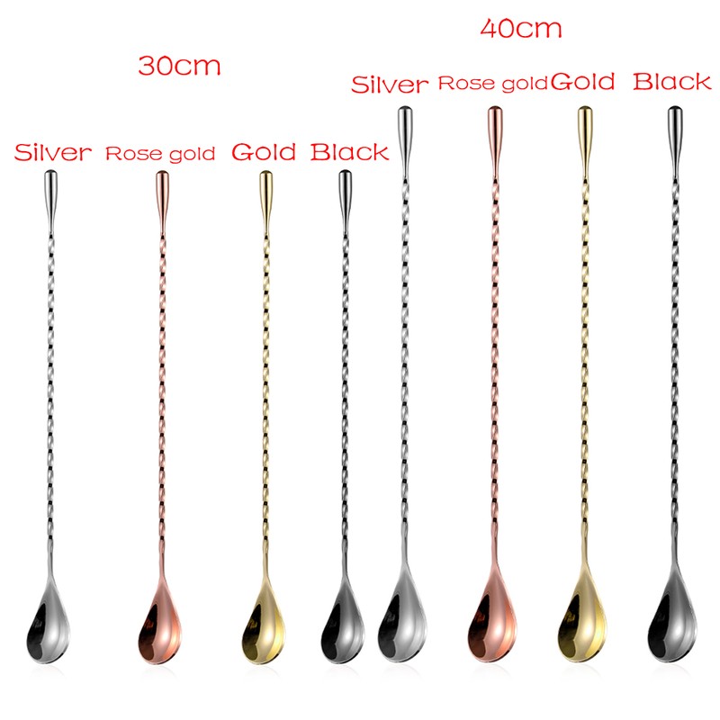 Type:Kitchen Tools Material:Metal Length: 30/40cm Diameter:<5cm Color: Silver/ Gold /Black/Rose Gold Polishing process:Mirror polishing Feature:Eco-Friendly The Stainless Steel Bar Spoon ensures your cocktail is thoroughly mixed all the way through. With a stylish teardrop end and twisted stem, these cocktail spoons are perfect for layering drinks. Note: 1.Due to the light and monitors effect, colors may have lightly difference. 2.Please allow 1-2cm size errors due to manual measurement. Thank you for your understand! 3.1cm=0.39''.