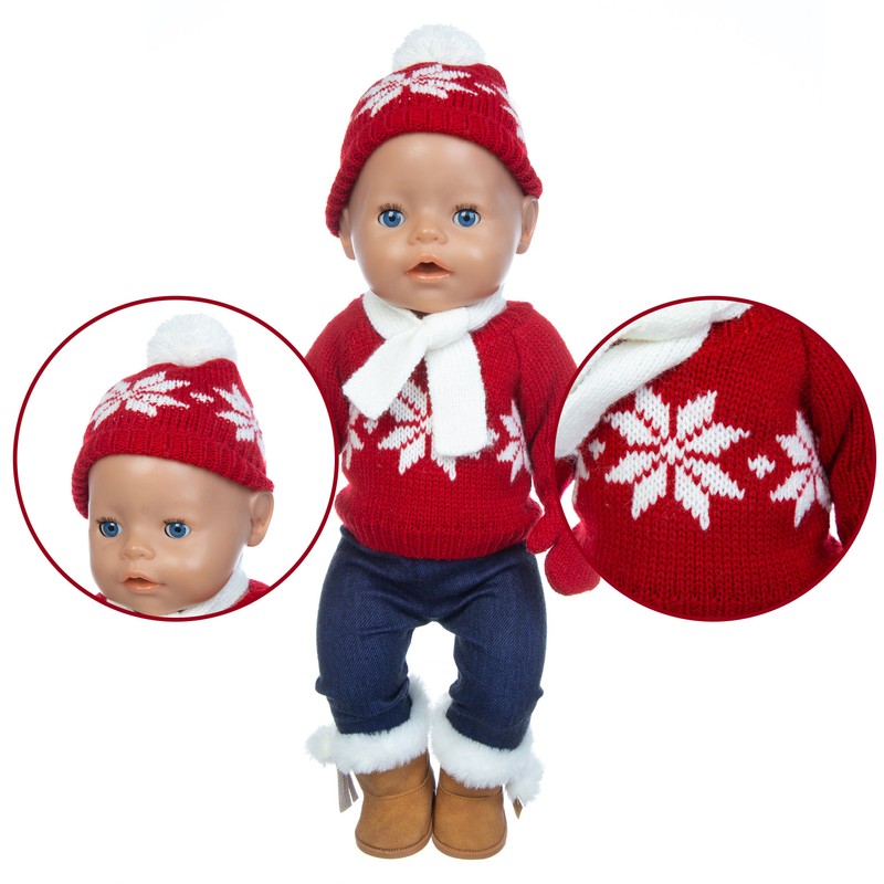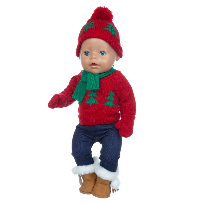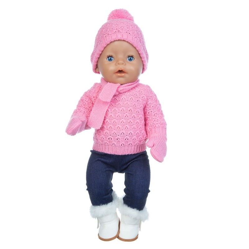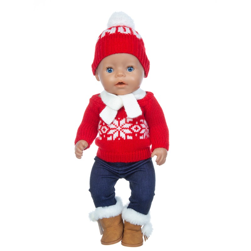 • 1 Conjunto Suéter Terno + Chapéu + Cachecol Luvas Caber 17 Polegada 43Cm Roupas De Boneca Bebê Nascido Terno Para O Presente Do Festival Aniversário Do Bebê