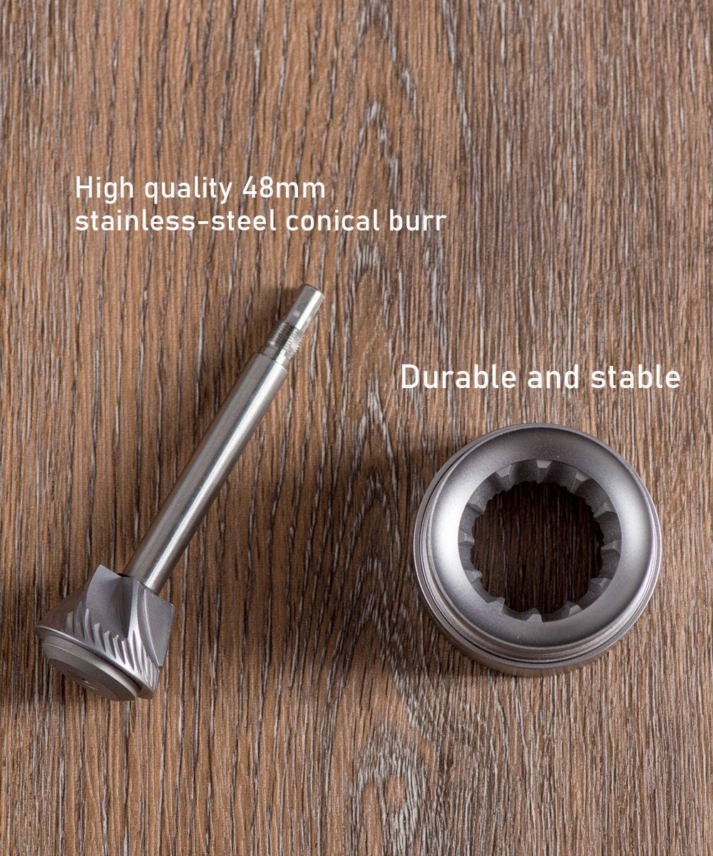 ☕DURABLE and STABILITY BURR– 48mm conical burr makes greater grinding efficiency. Internal fixing between the burr and central shaft, no more wobbly burr comes loose. Consistency of performance grind.