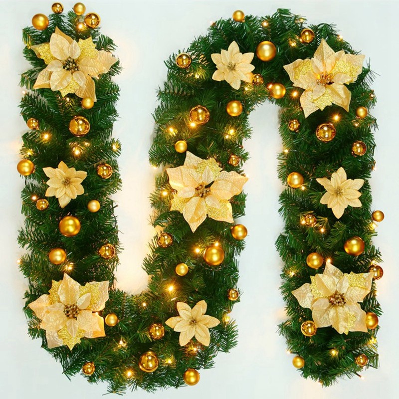 2.7 M Natal Led Rattan Guirlanda Decorativo Verde Natal Guirlanda Artificial Árvore De Natal Rattan Banner Decoração Grinalda
